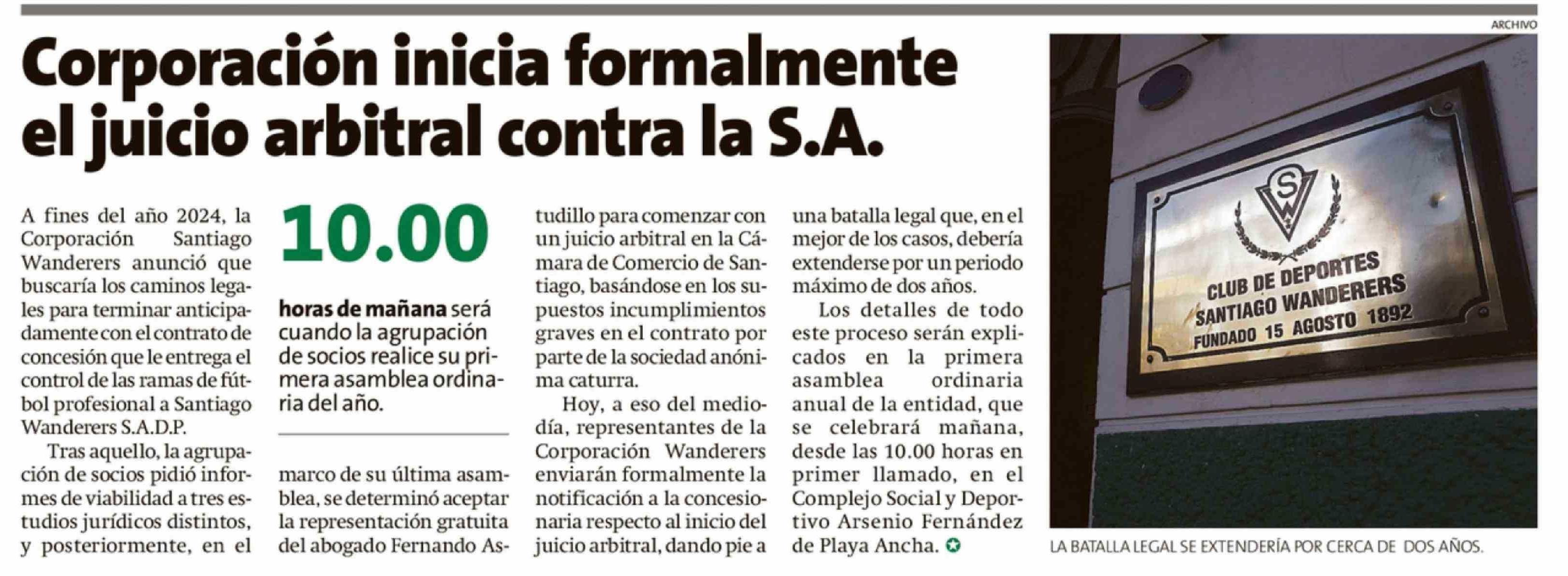 Corporación inicia formalmente el juicio arbitral contra la S.A.