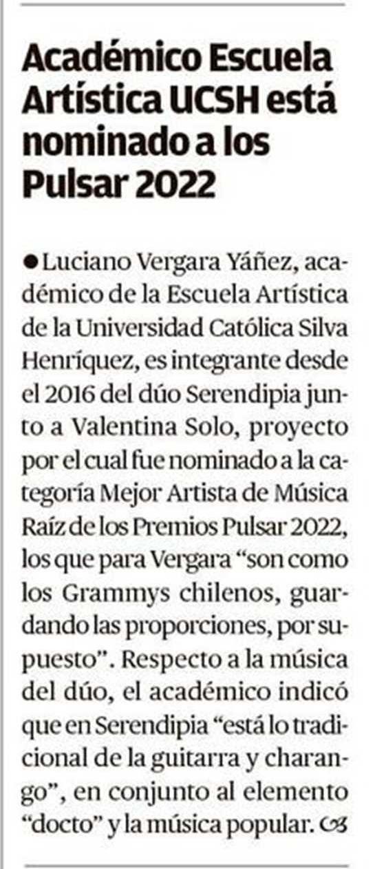 Académico Escuela Artística UCSH está nominado a los Pulsar 2022