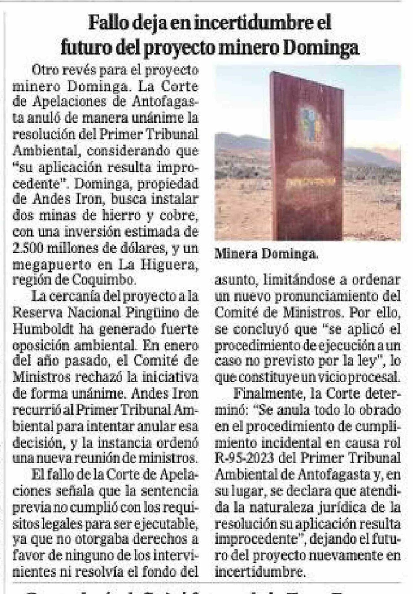 Fallo deja en incertidumbre el futuro del proyecto minero Dominga