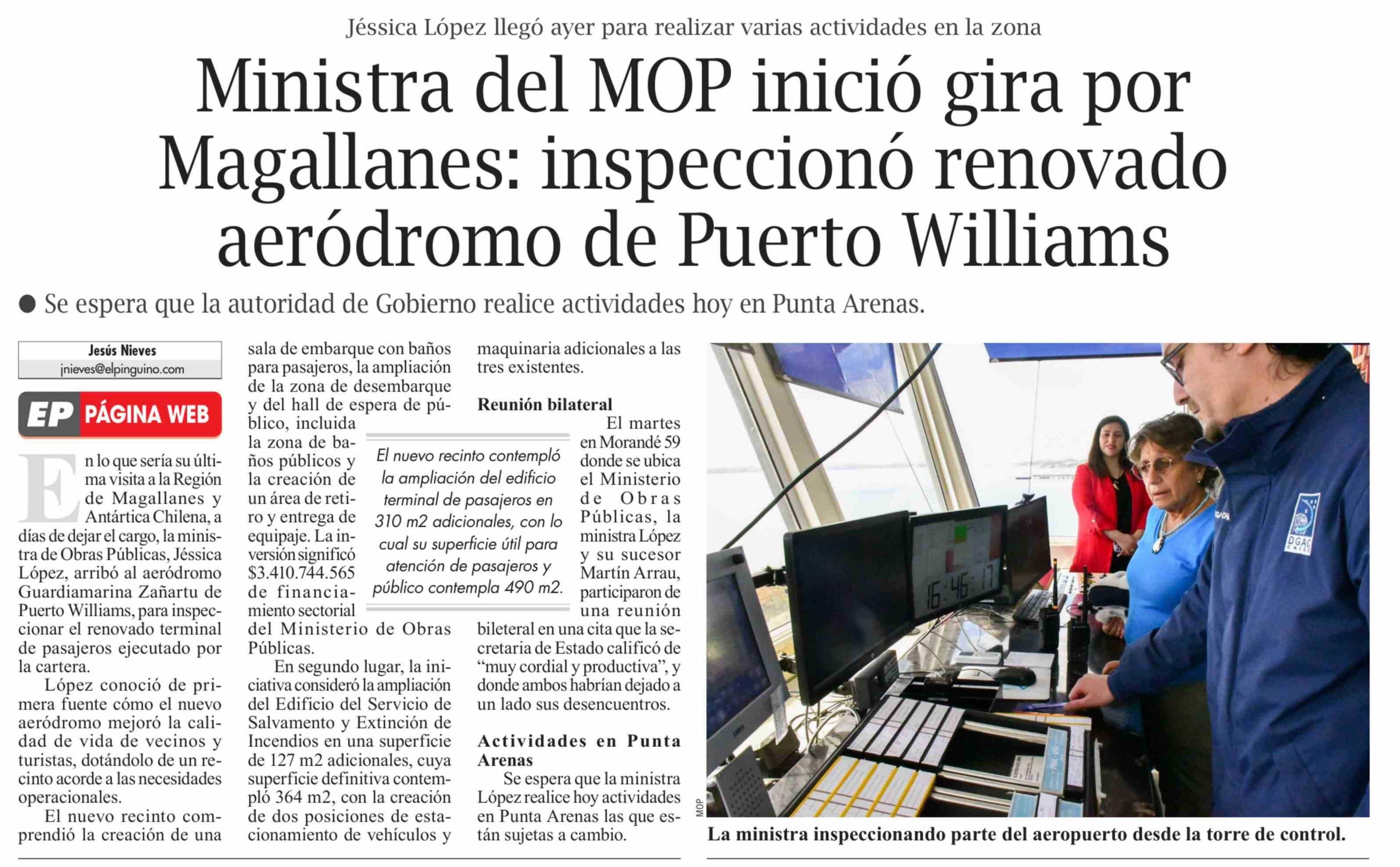 Ministra del MOP inició gira por Magallanes: inspeccionó renovado aeródromo de Puerto Williams