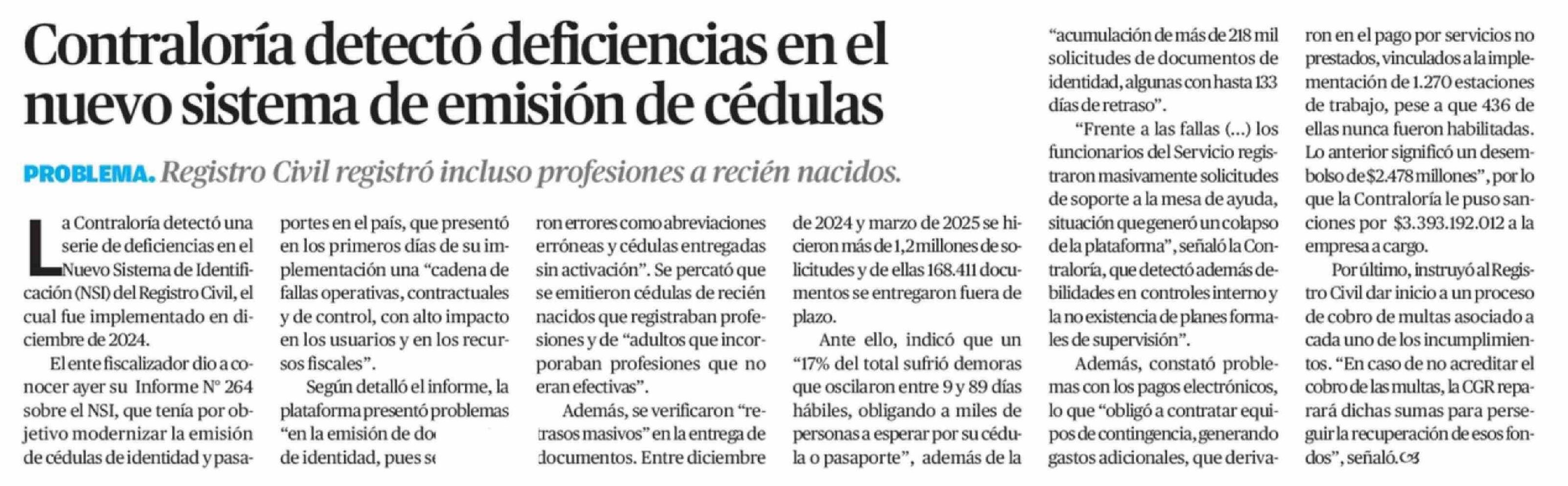Contraloría detectó deficiencias en el nuevo sistema de emisión de cédulas