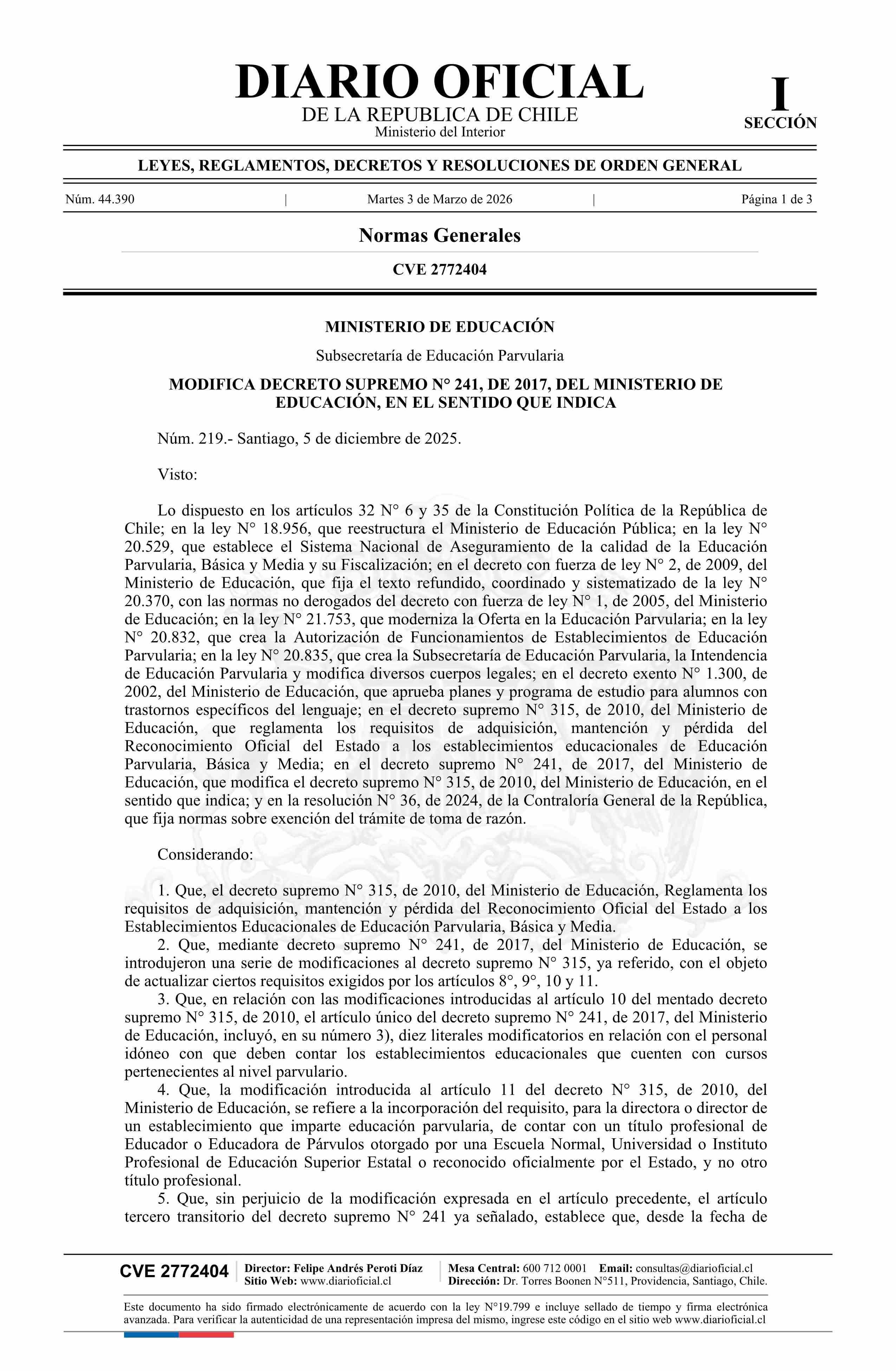 Fuente: Diario Oficial Edición Electrónica (Diario Oficial de Chile - 1 Normas Generales) Página(s): 19-21