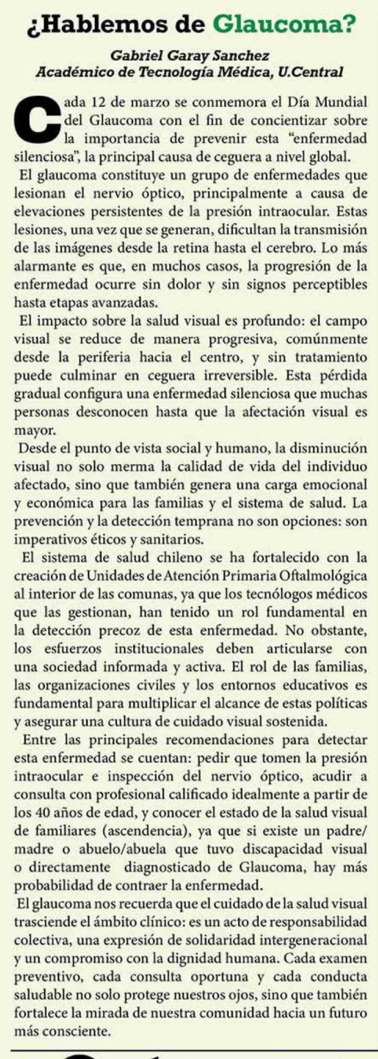 Columnas de Opinión: ¿Hablemos de Glaucoma?