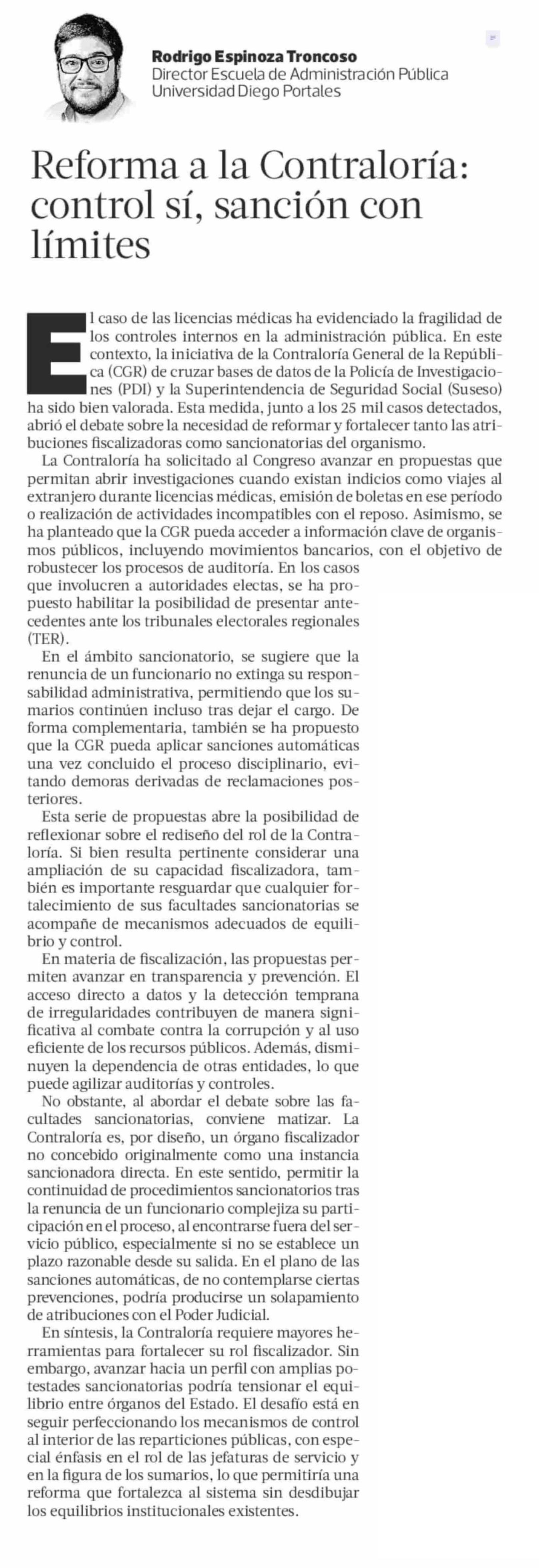Reforma a la Contraloría: control sí, sanción con límites