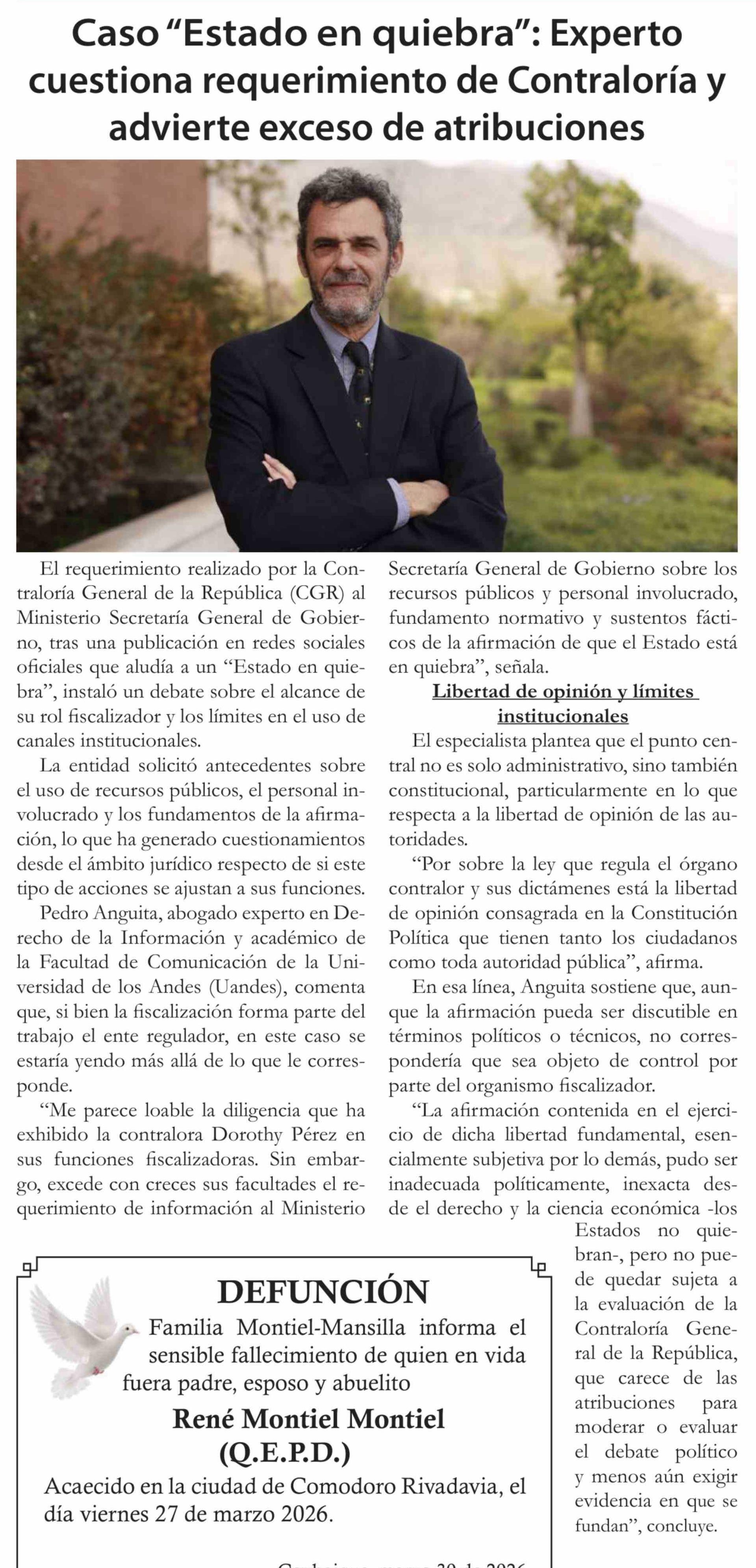 Caso "Estado en quiebra": Experto cuestiona requerimiento de Contraloría y advierte exceso de atribuciones