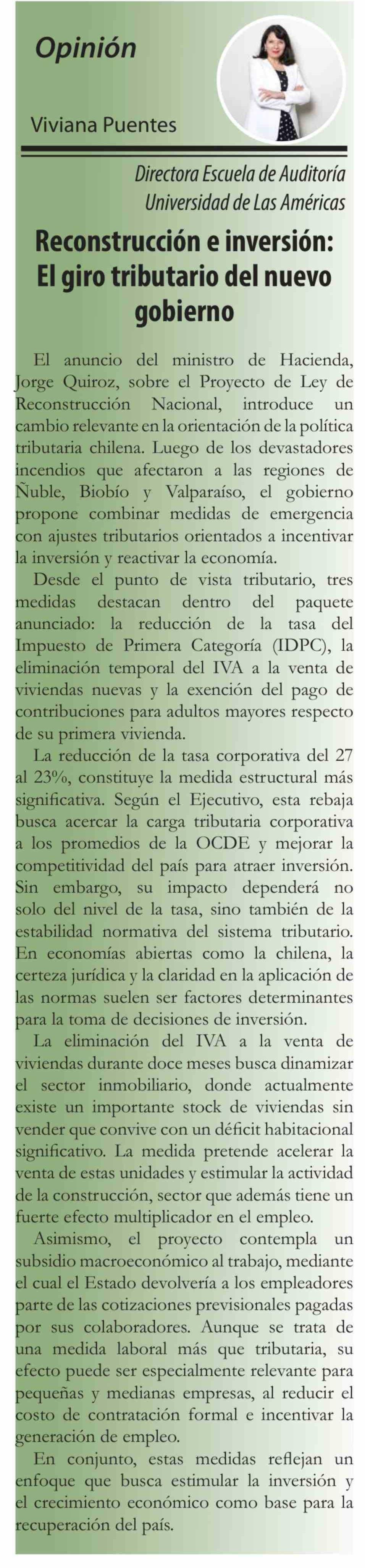 Columnas de Opinión: Reconstrucción e inversión: El giro tributario del nuevo gobierno