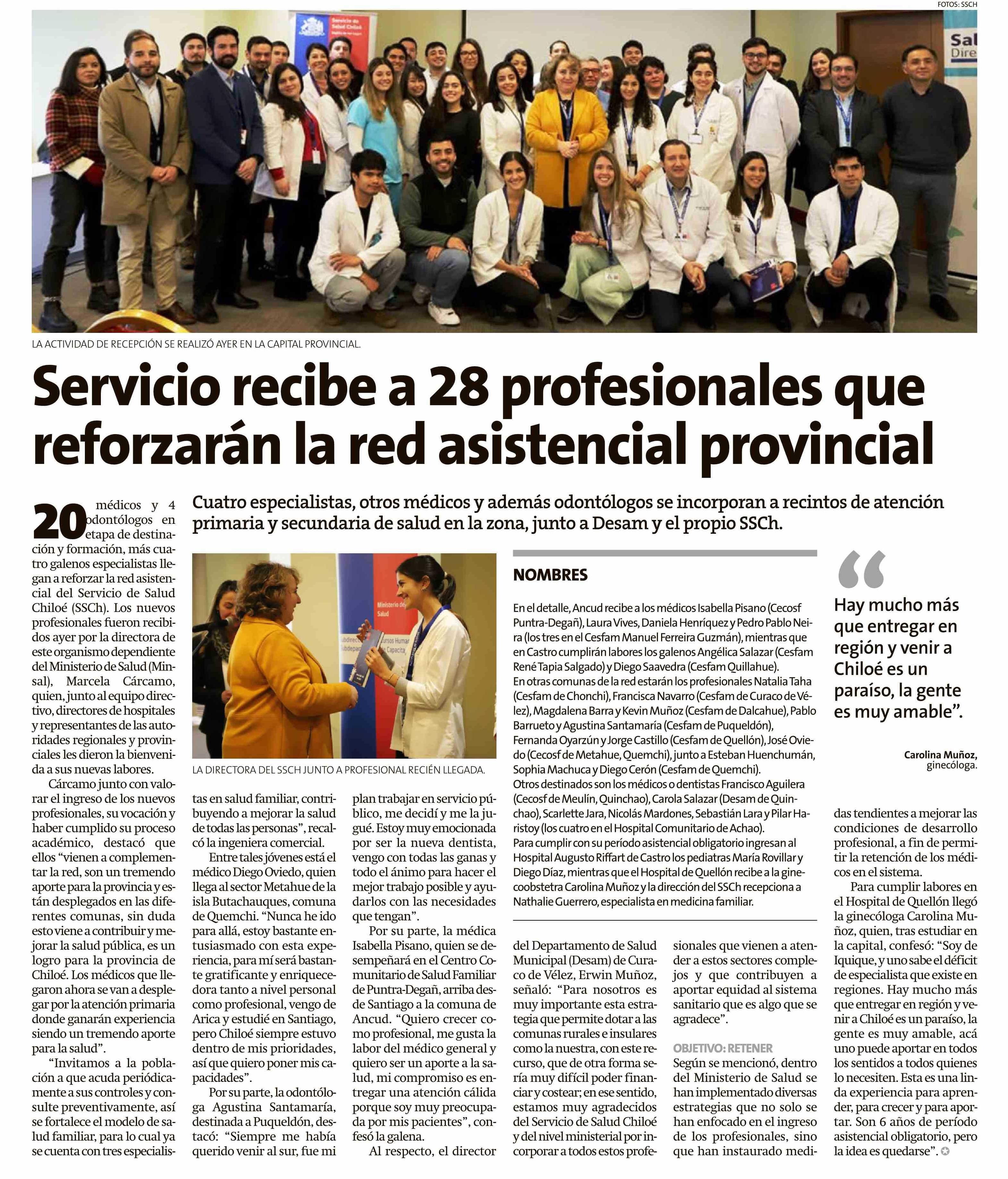 Servicio recibe a 28 profesionales que reforzarán la red asistencial provincial