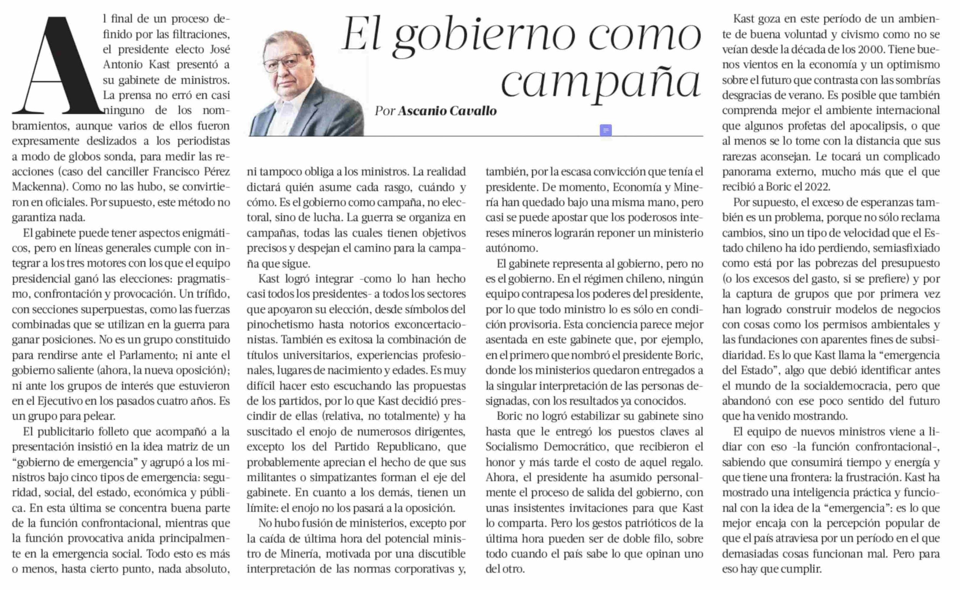 Columnas de Opinión: El gobierno como campaña