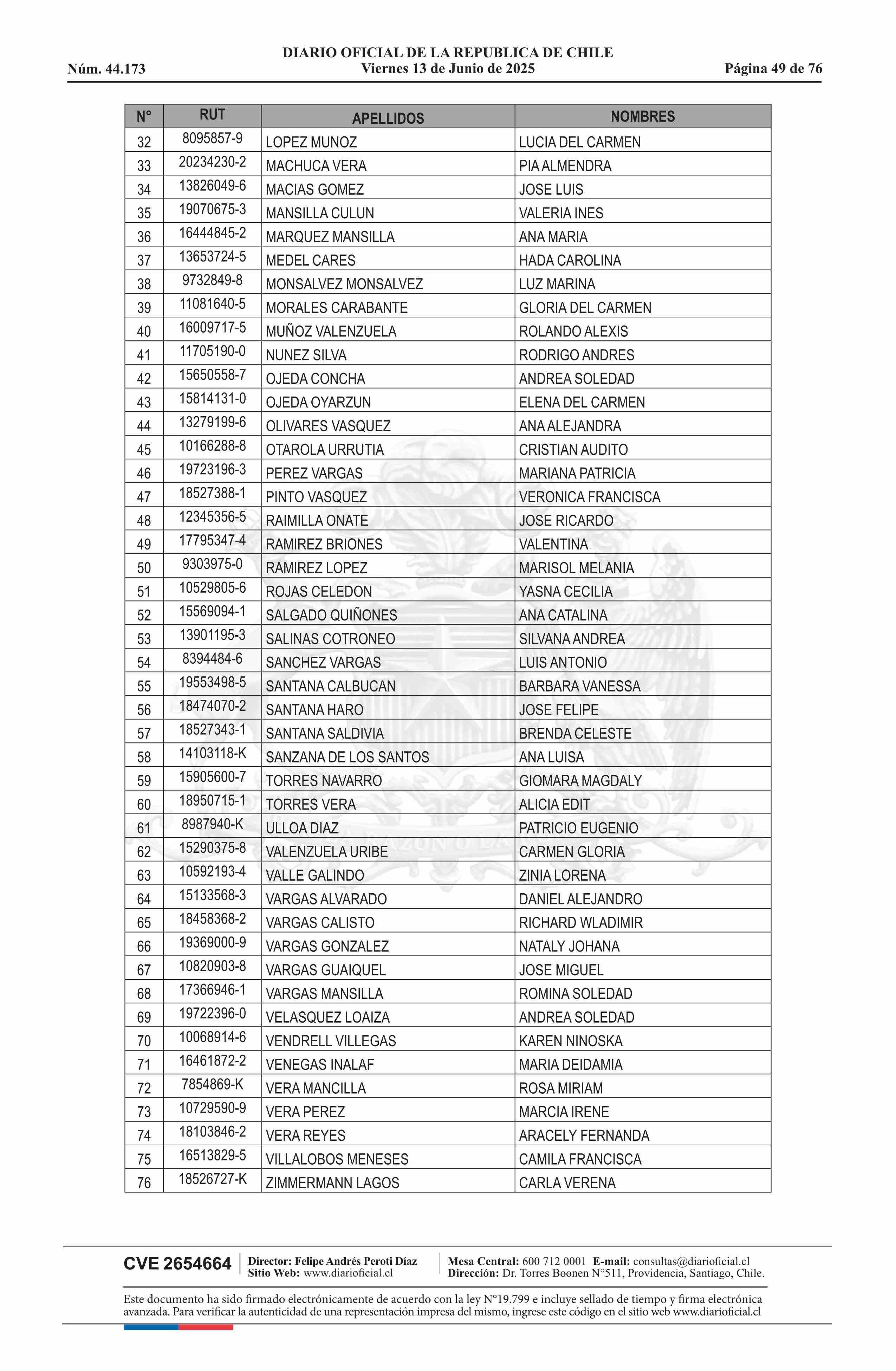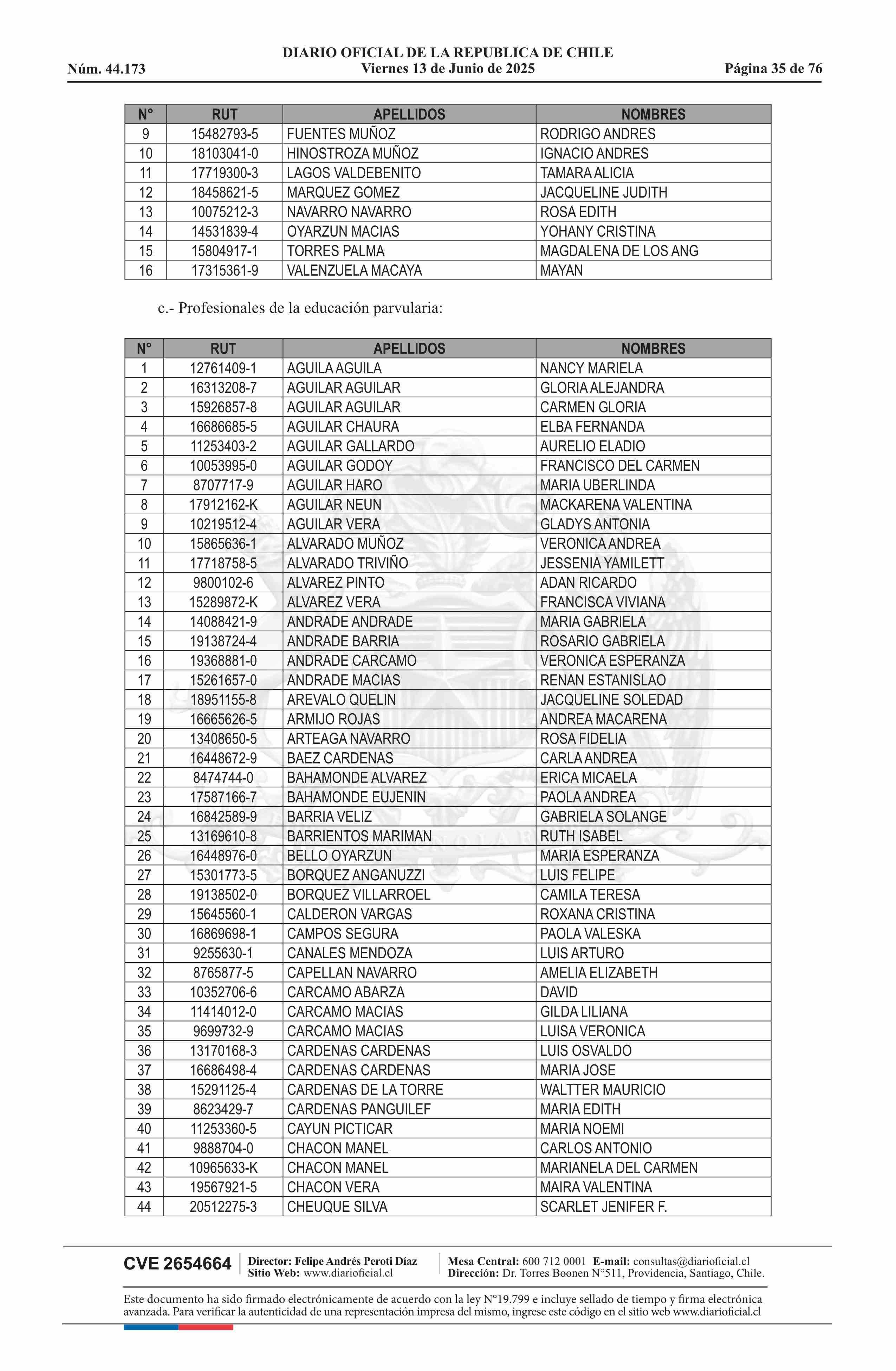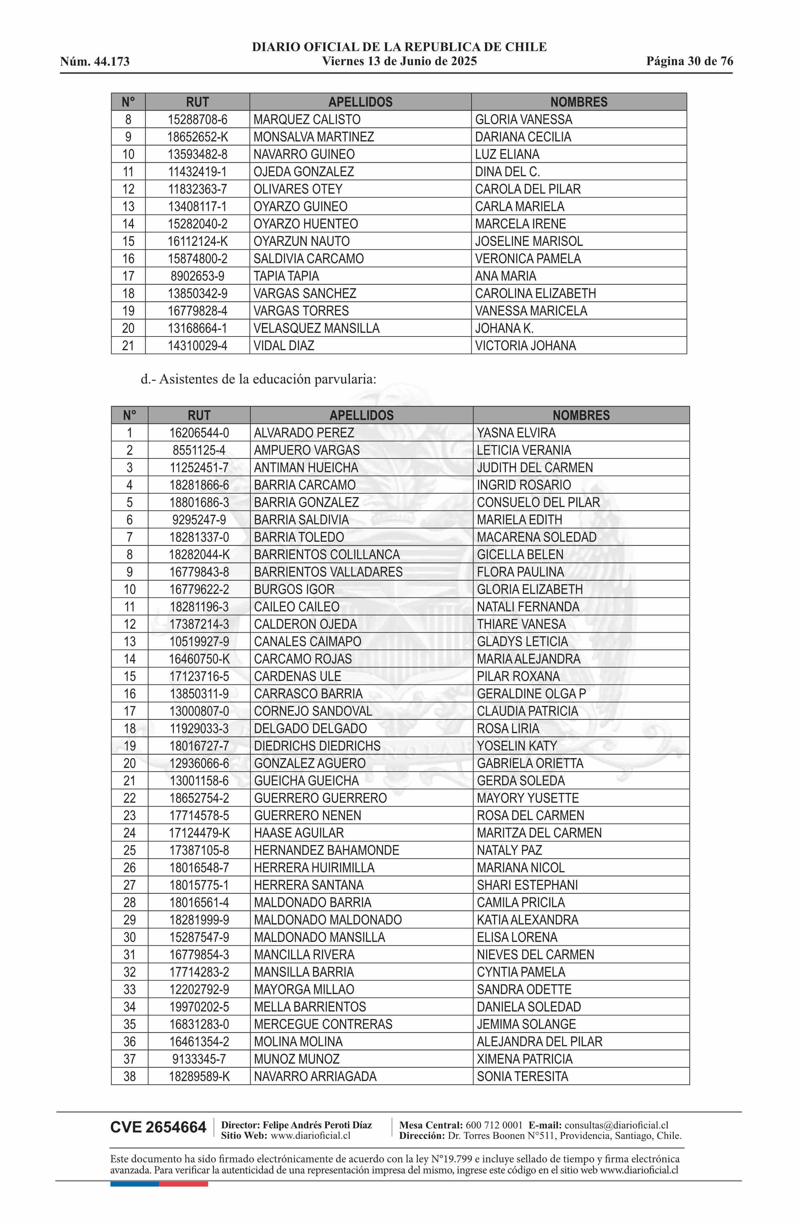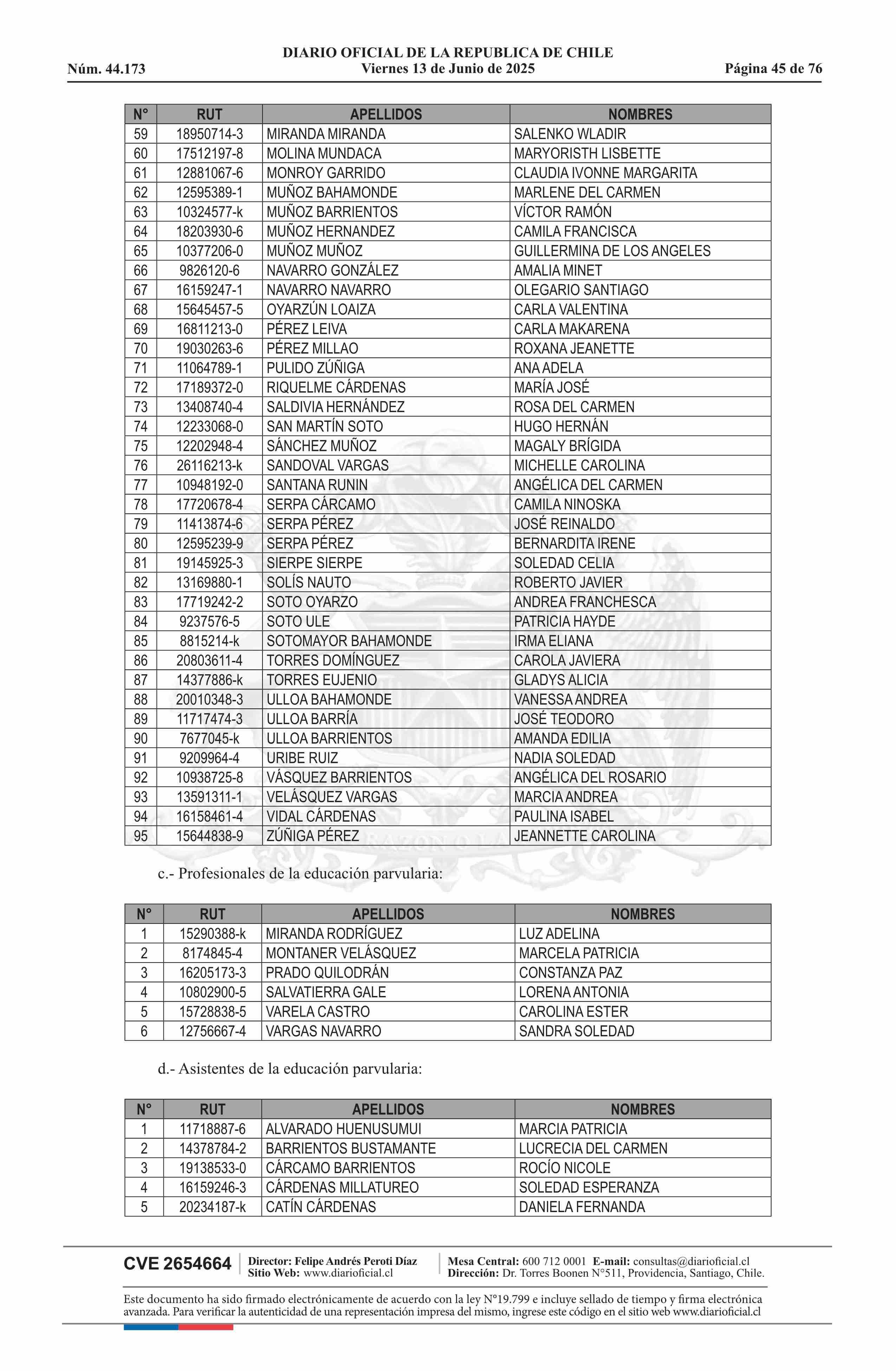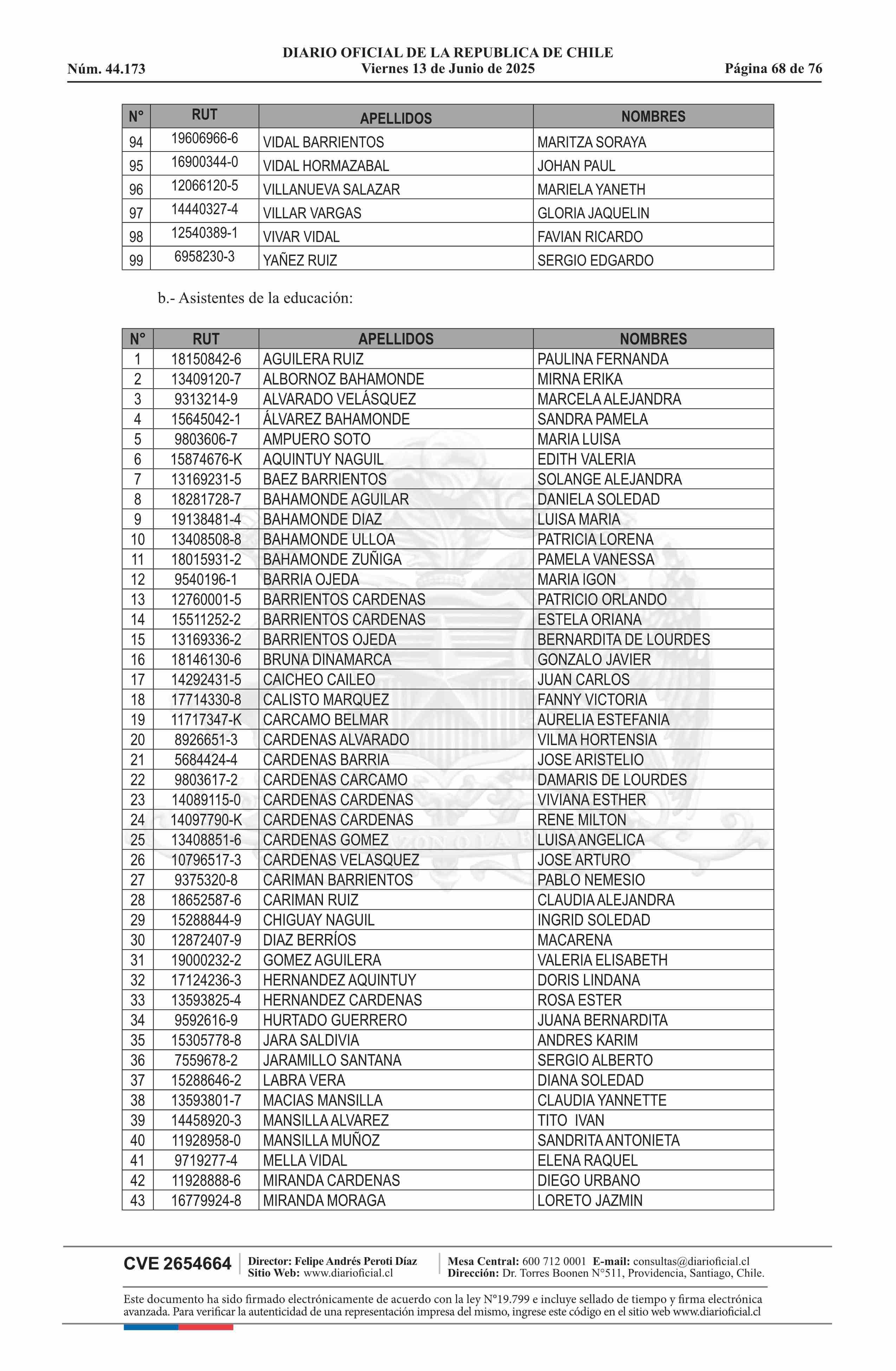 | Título: | Decreto exento número 382, de 2025.- Individualiza a profesionales de la educación y asistentes de la educación que se desempeñan en los establecimientos educacionales de dependencia de las municipalidades de Castro, Ancud, Chonchi, Curaco de Vélez, Dalcahue, Puqueldón, Queilén, Quellón, Quemchi y Q |