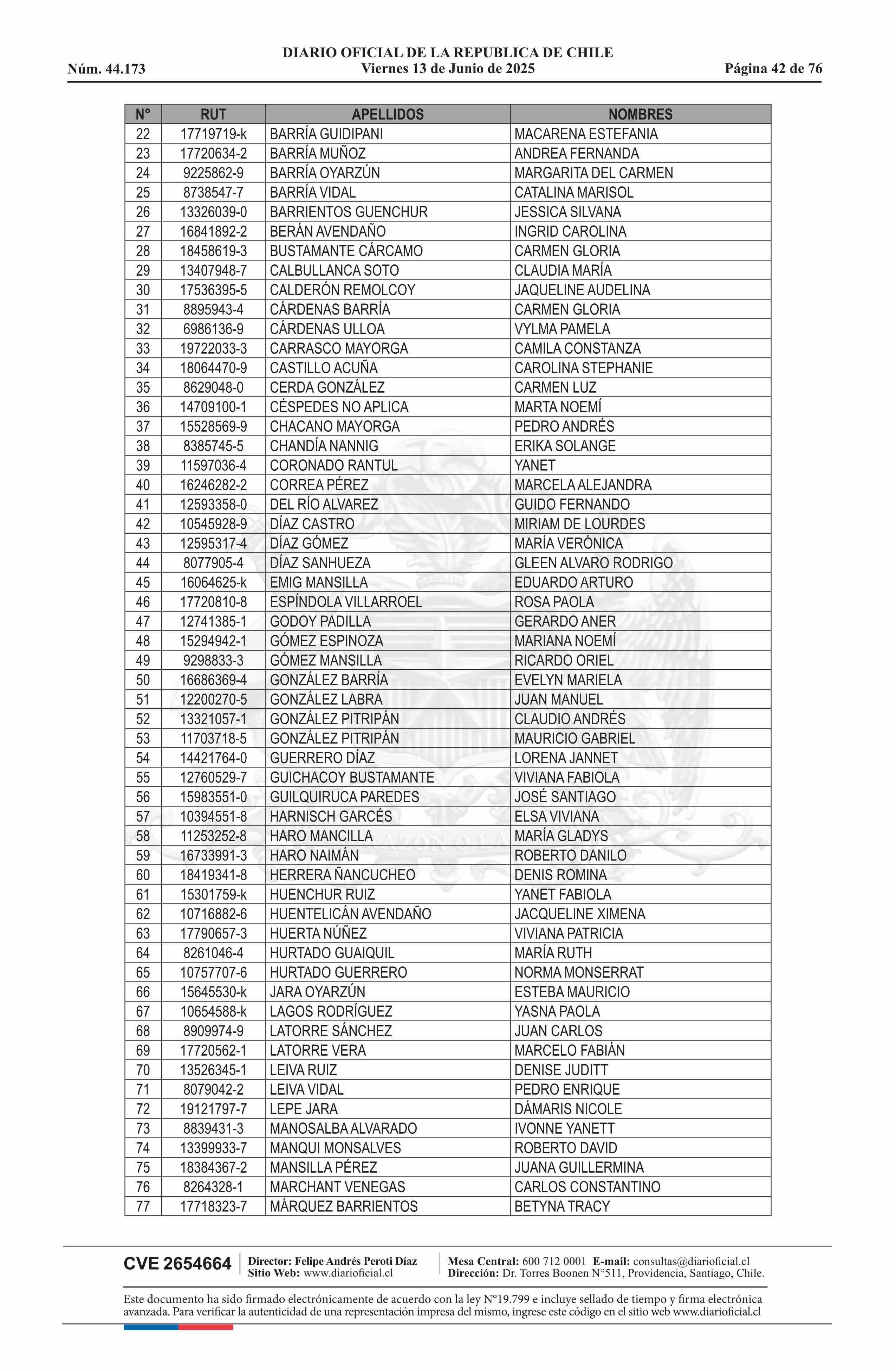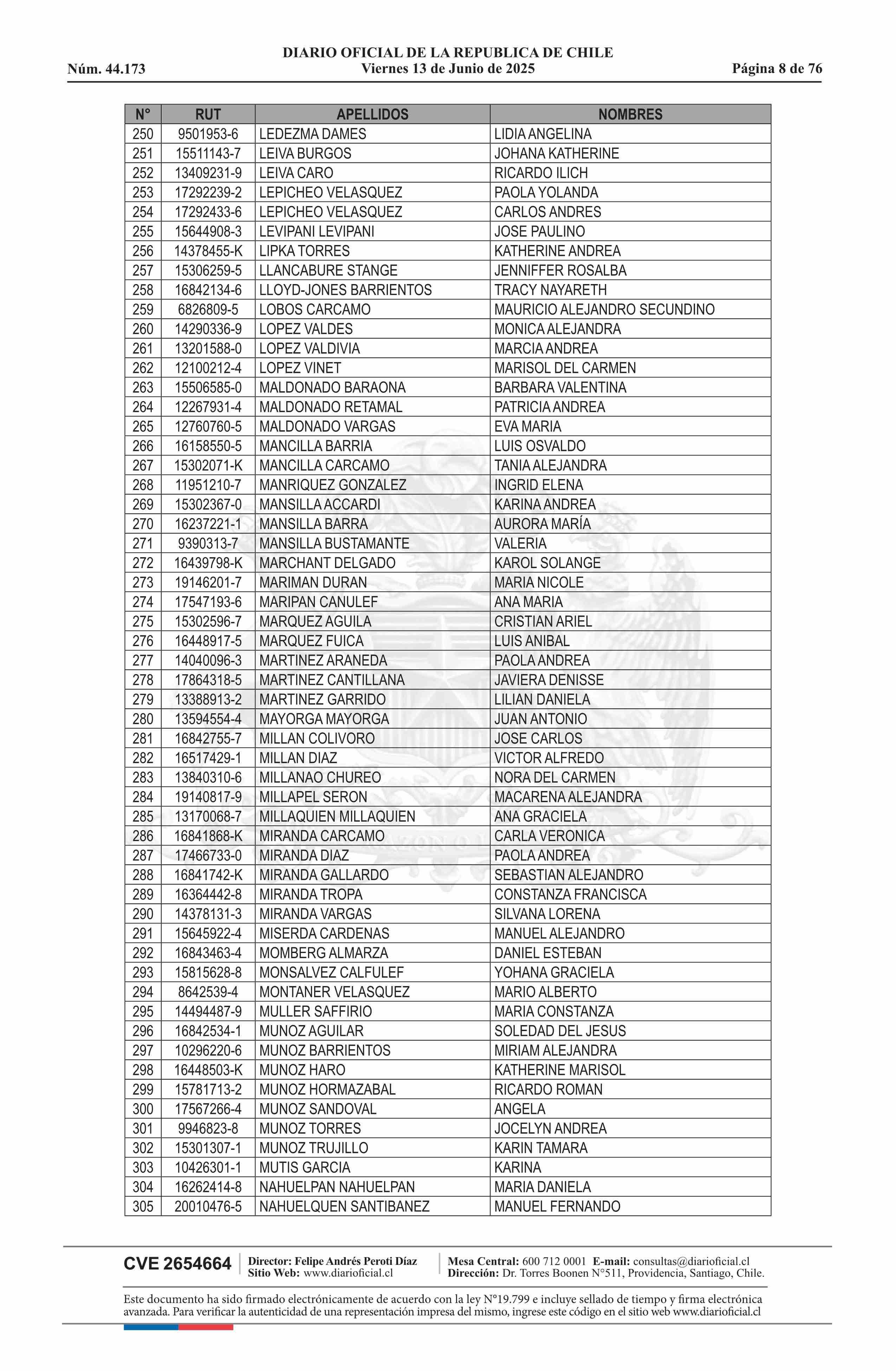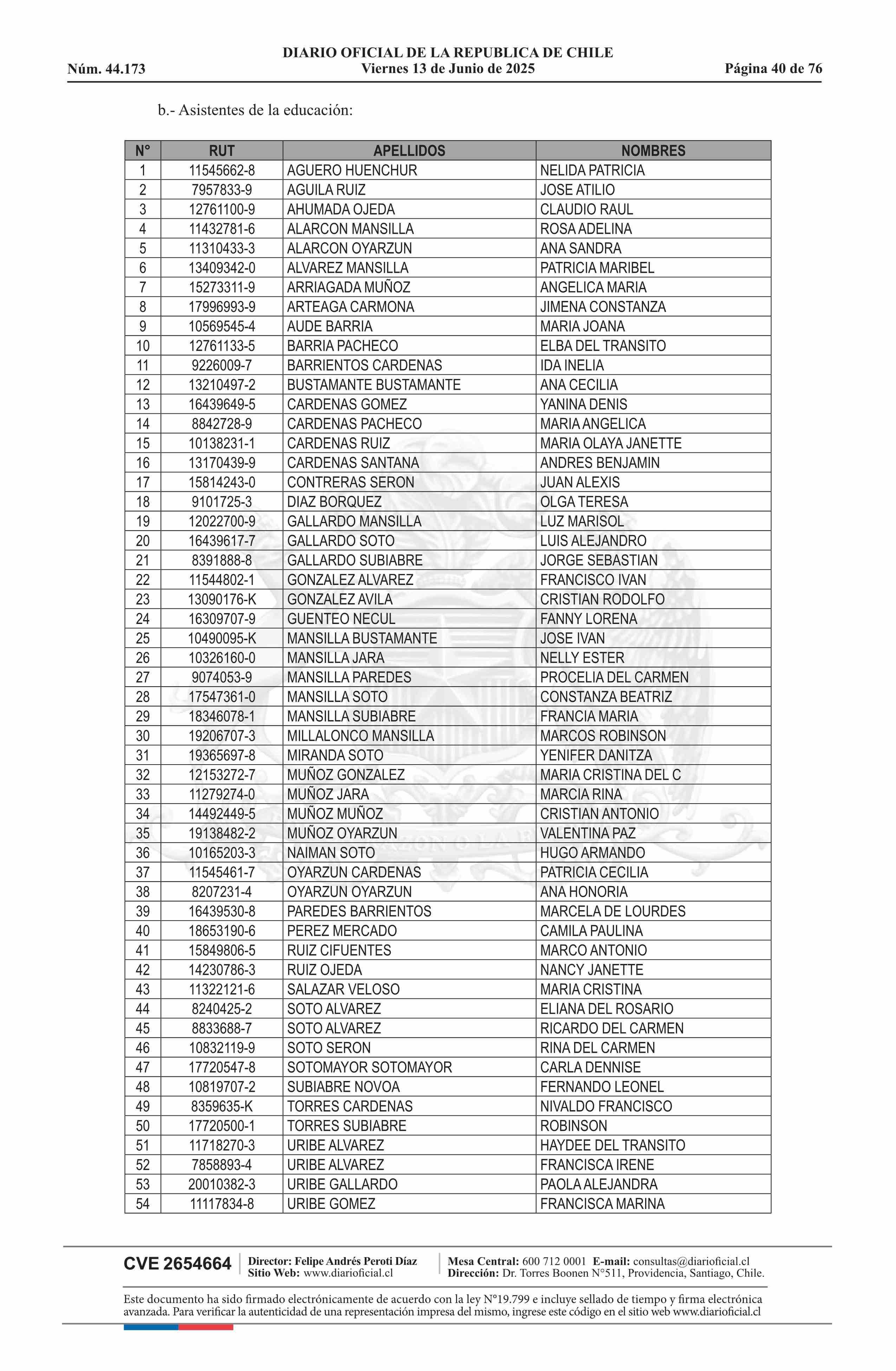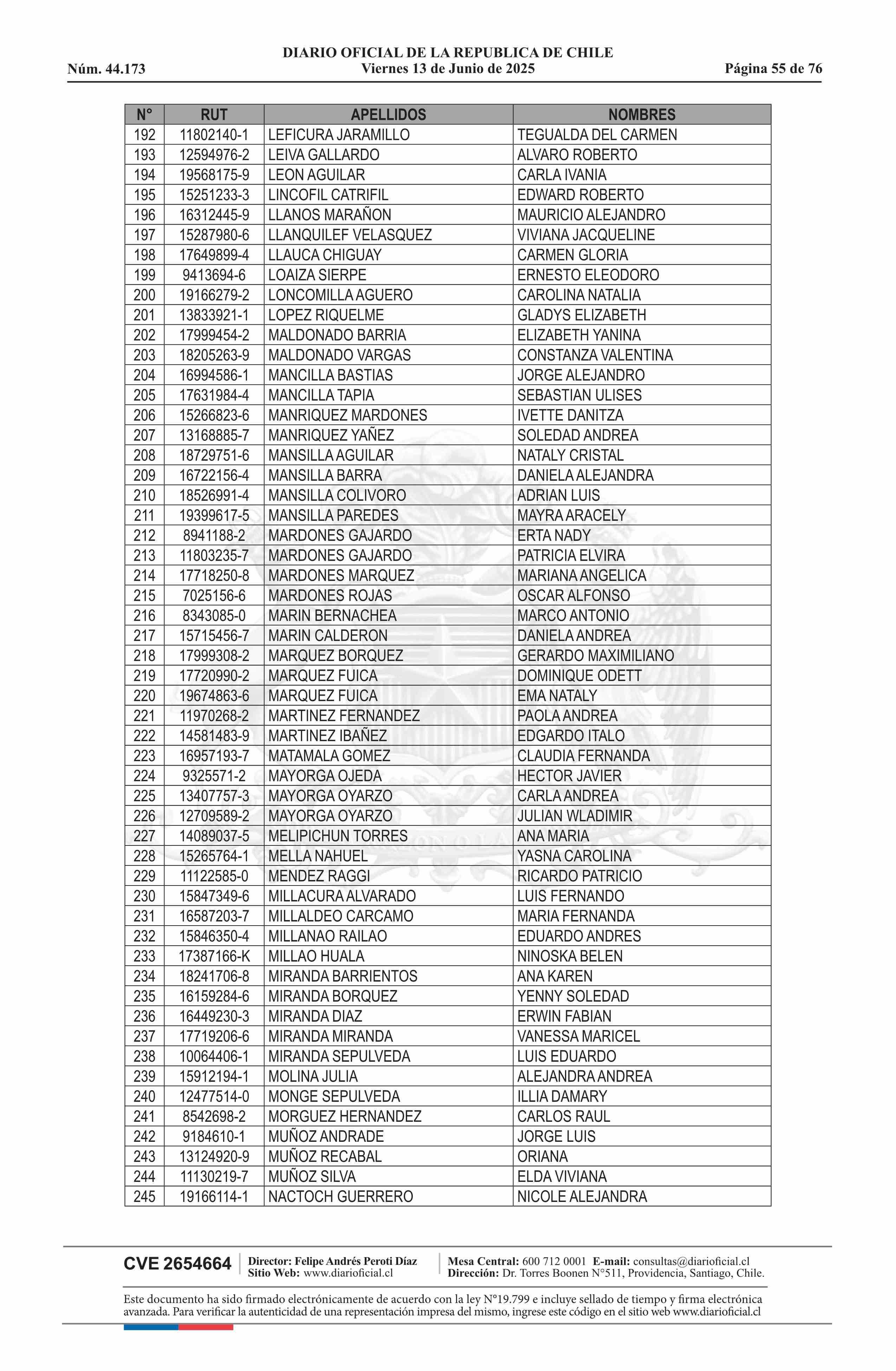 | Título: | Decreto exento número 382, de 2025.- Individualiza a profesionales de la educación y asistentes de la educación que se desempeñan en los establecimientos educacionales de dependencia de las municipalidades de Castro, Ancud, Chonchi, Curaco de Vélez, Dalcahue, Puqueldón, Queilén, Quellón, Quemchi y Q |