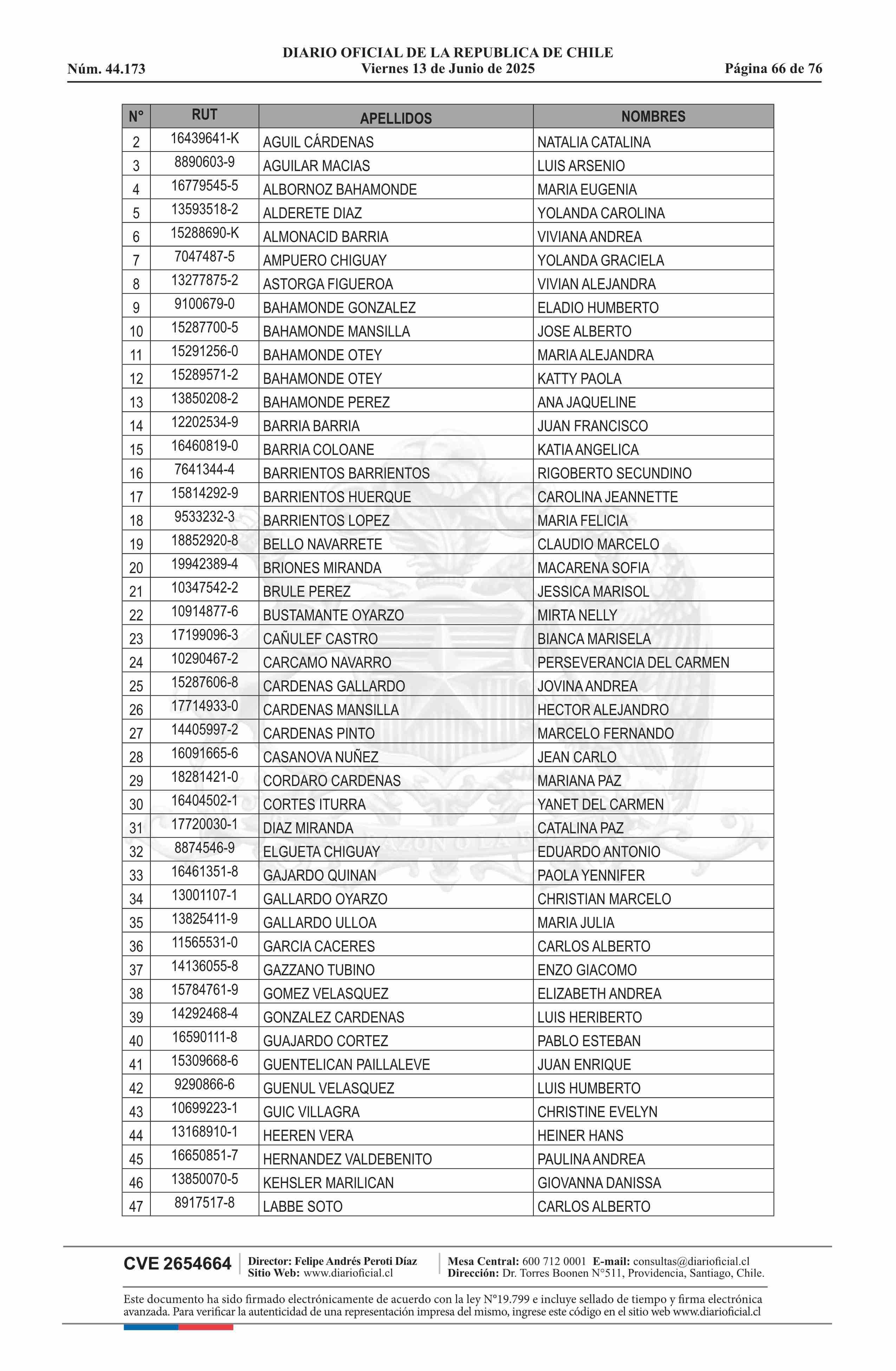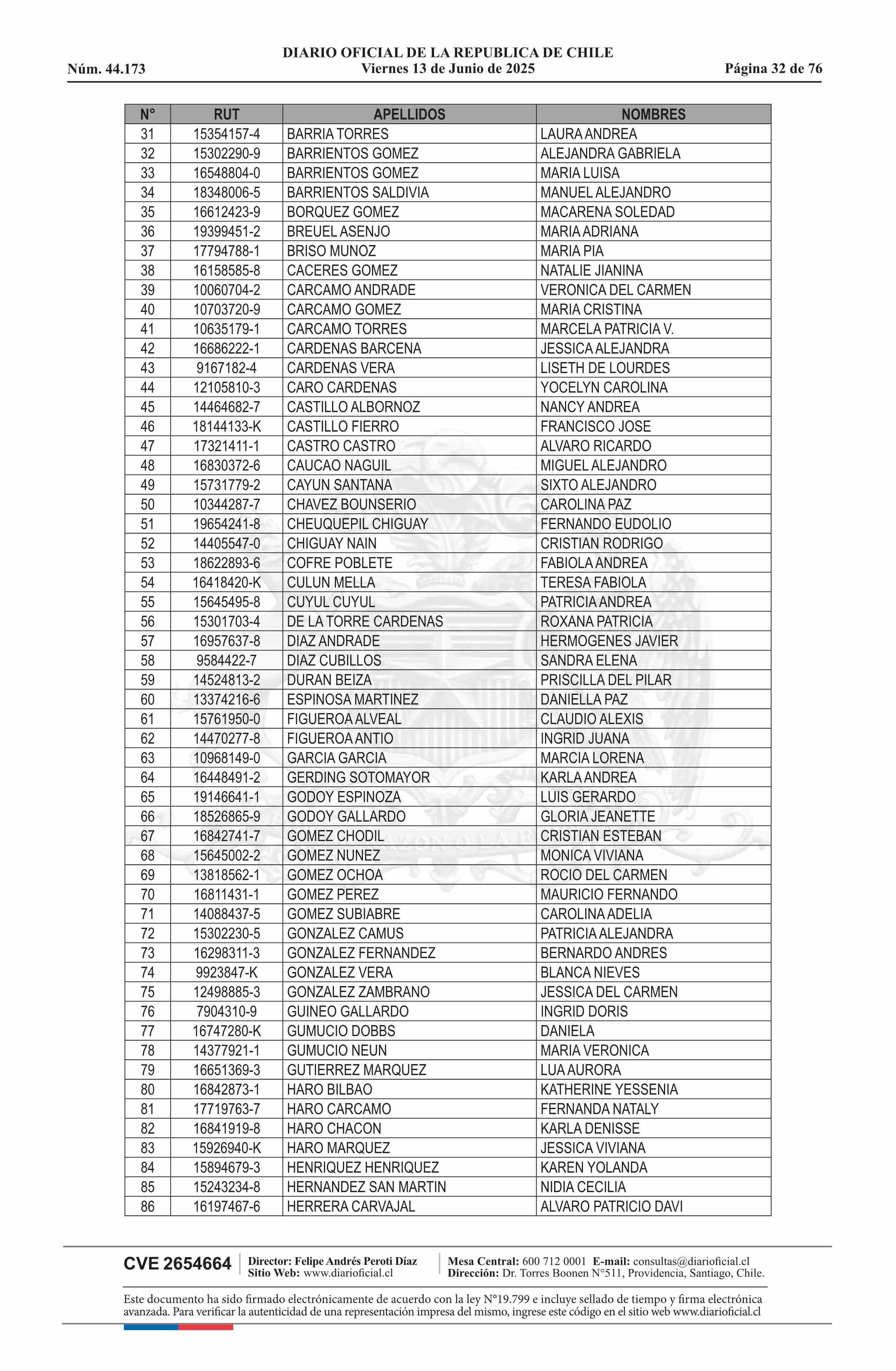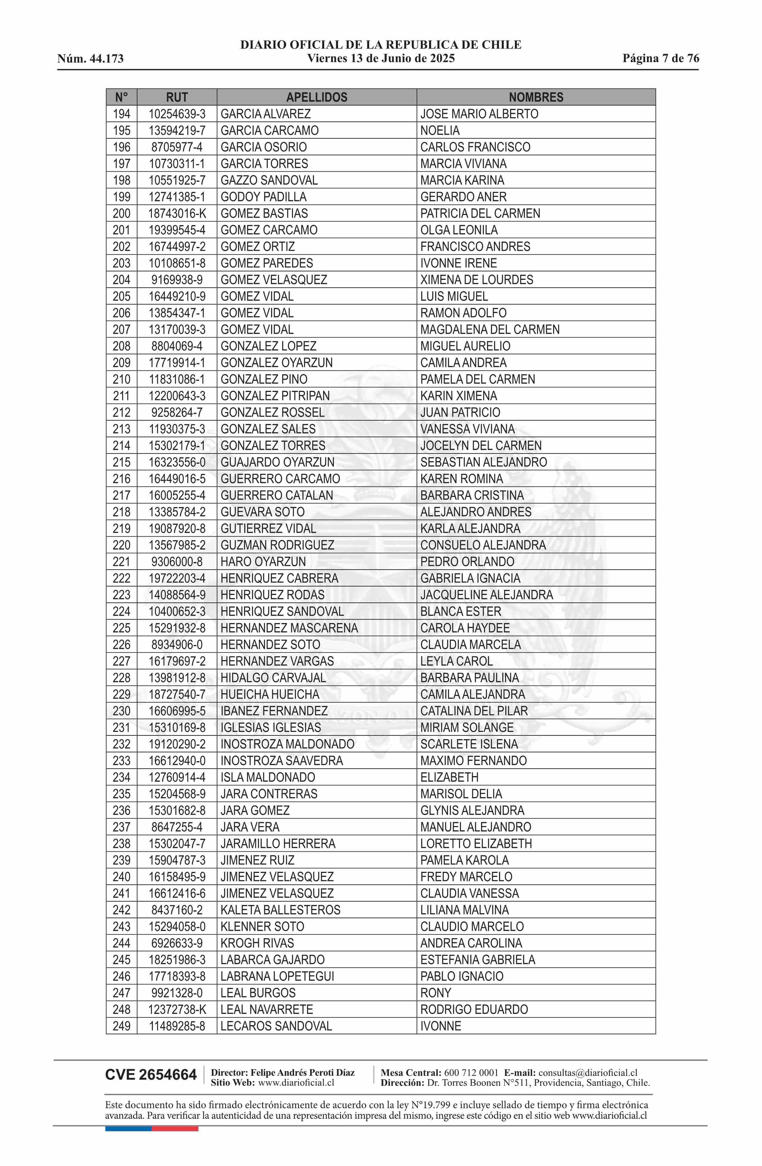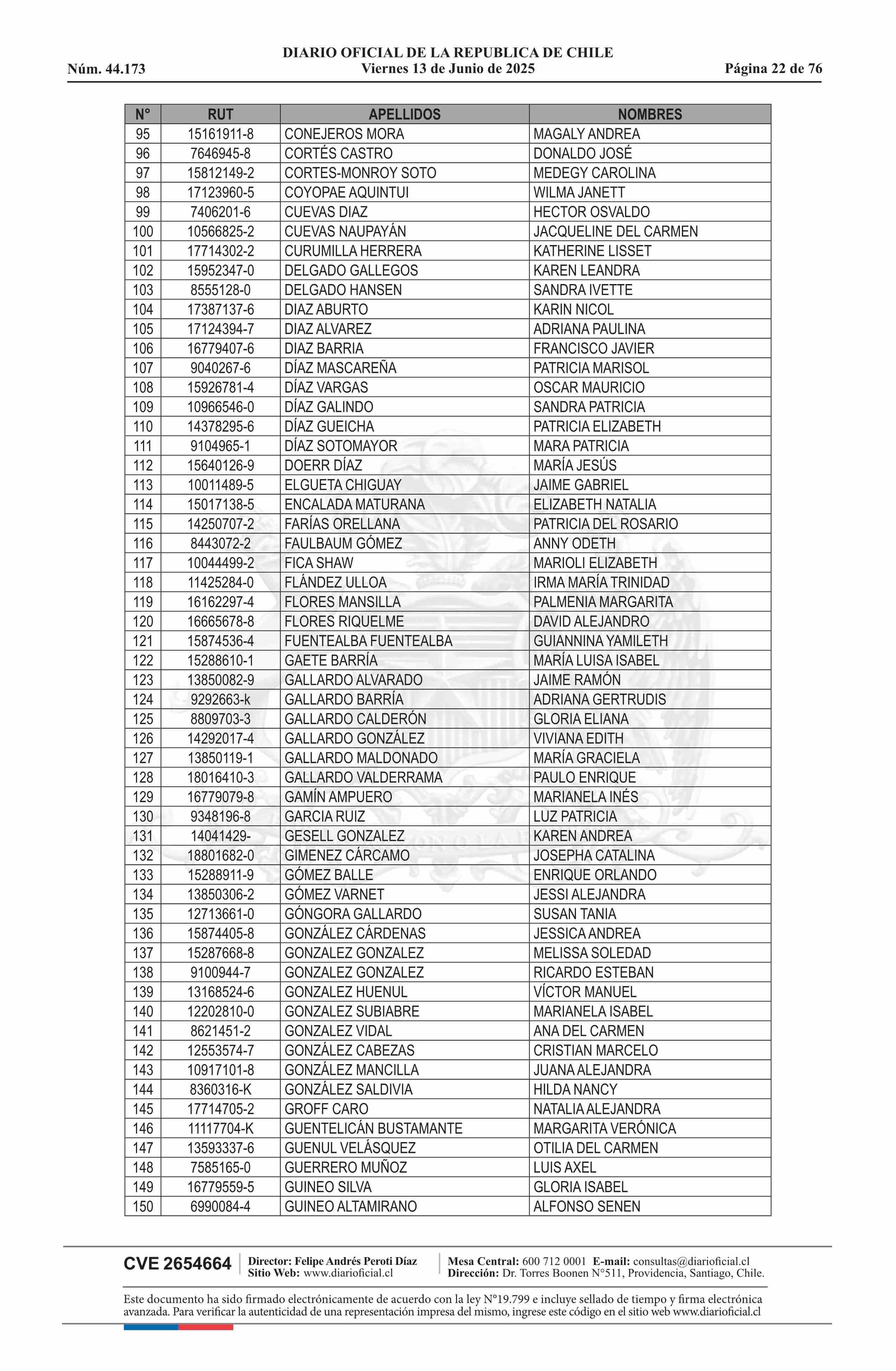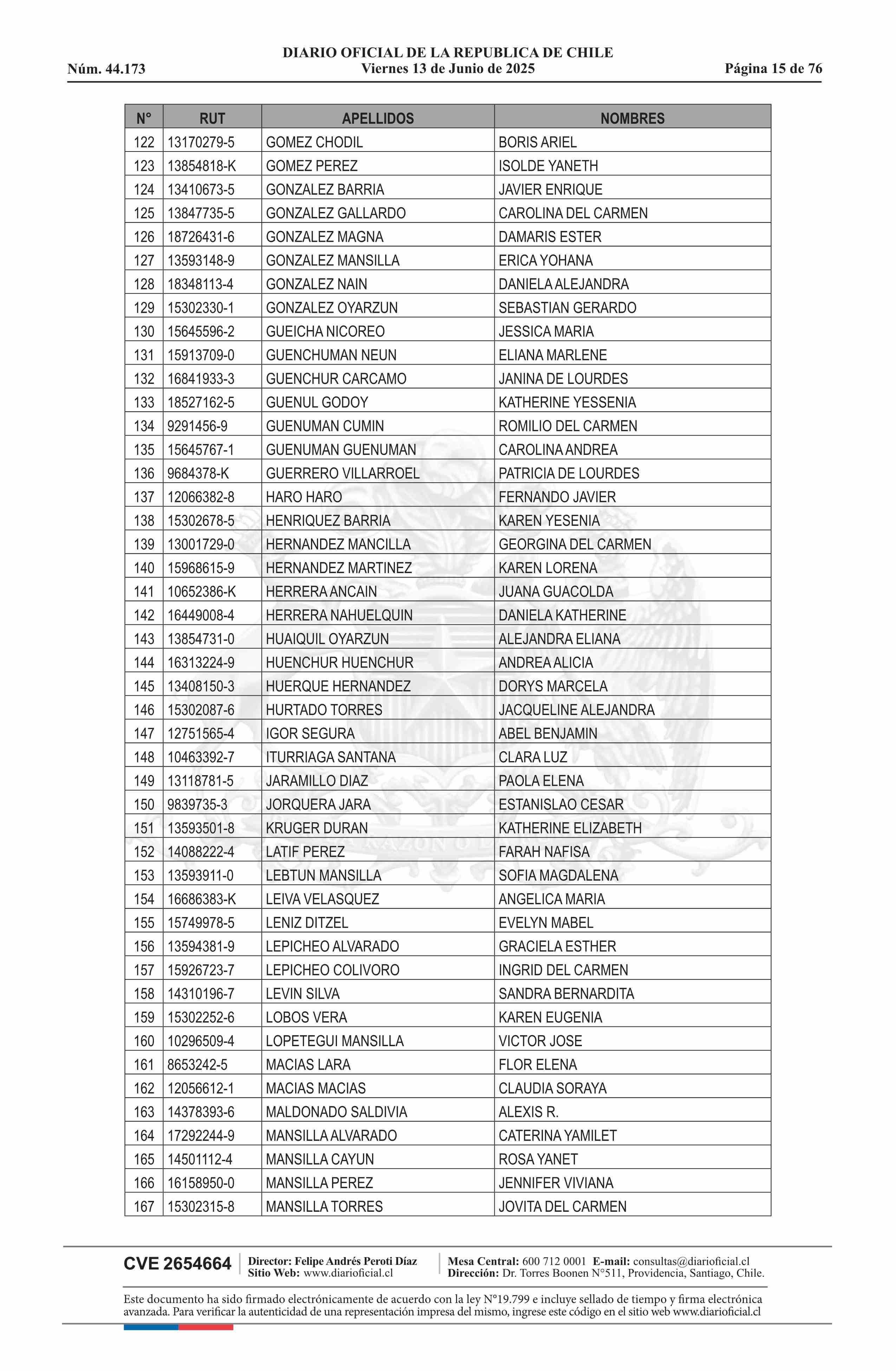 | Título: | Decreto exento número 382, de 2025.- Individualiza a profesionales de la educación y asistentes de la educación que se desempeñan en los establecimientos educacionales de dependencia de las municipalidades de Castro, Ancud, Chonchi, Curaco de Vélez, Dalcahue, Puqueldón, Queilén, Quellón, Quemchi y Q |
