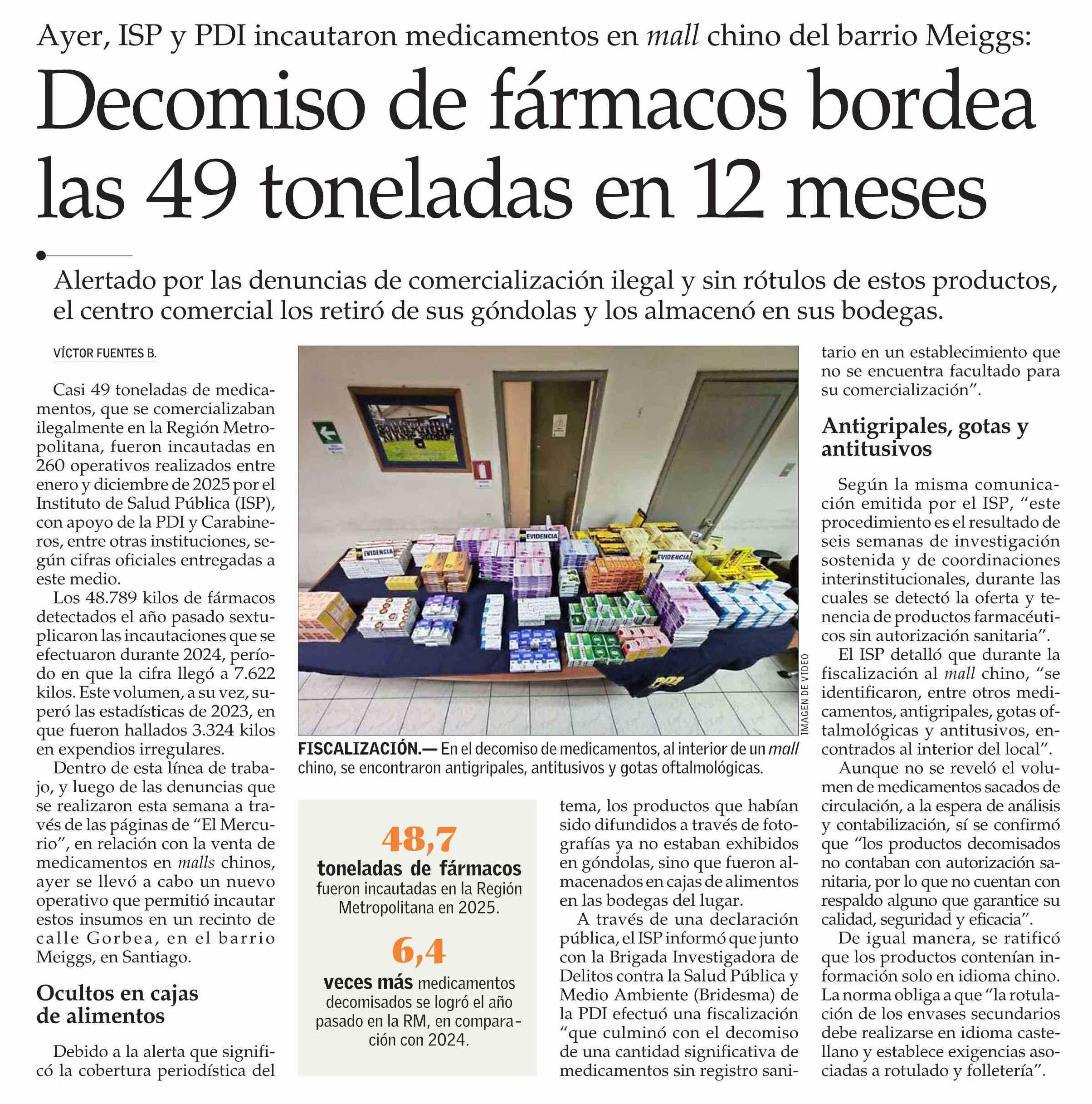 Decomiso de fármacos bordea las 49 toneladas en 12 meses