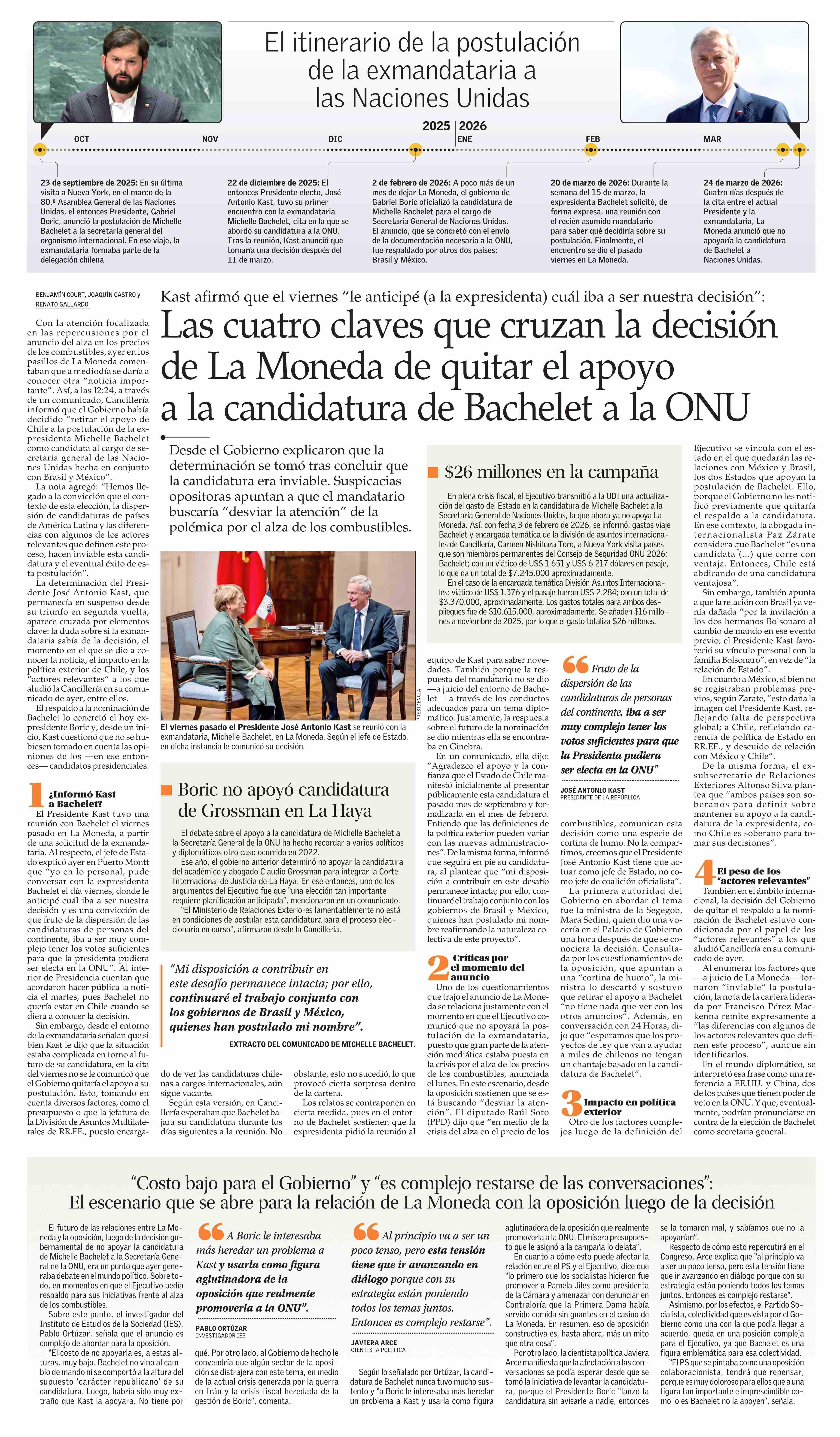Las cuatro claves que cruzan la decisión de La Moneda de quitar el apoyo a la candidatura de Bachelet a la ONU