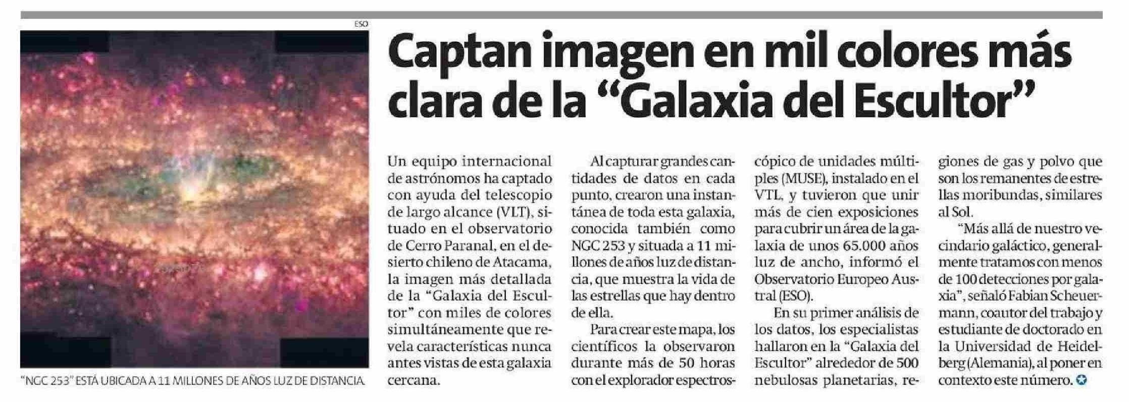 Captan imagen en mil colores más clara de la "Galaxia del Escultor"