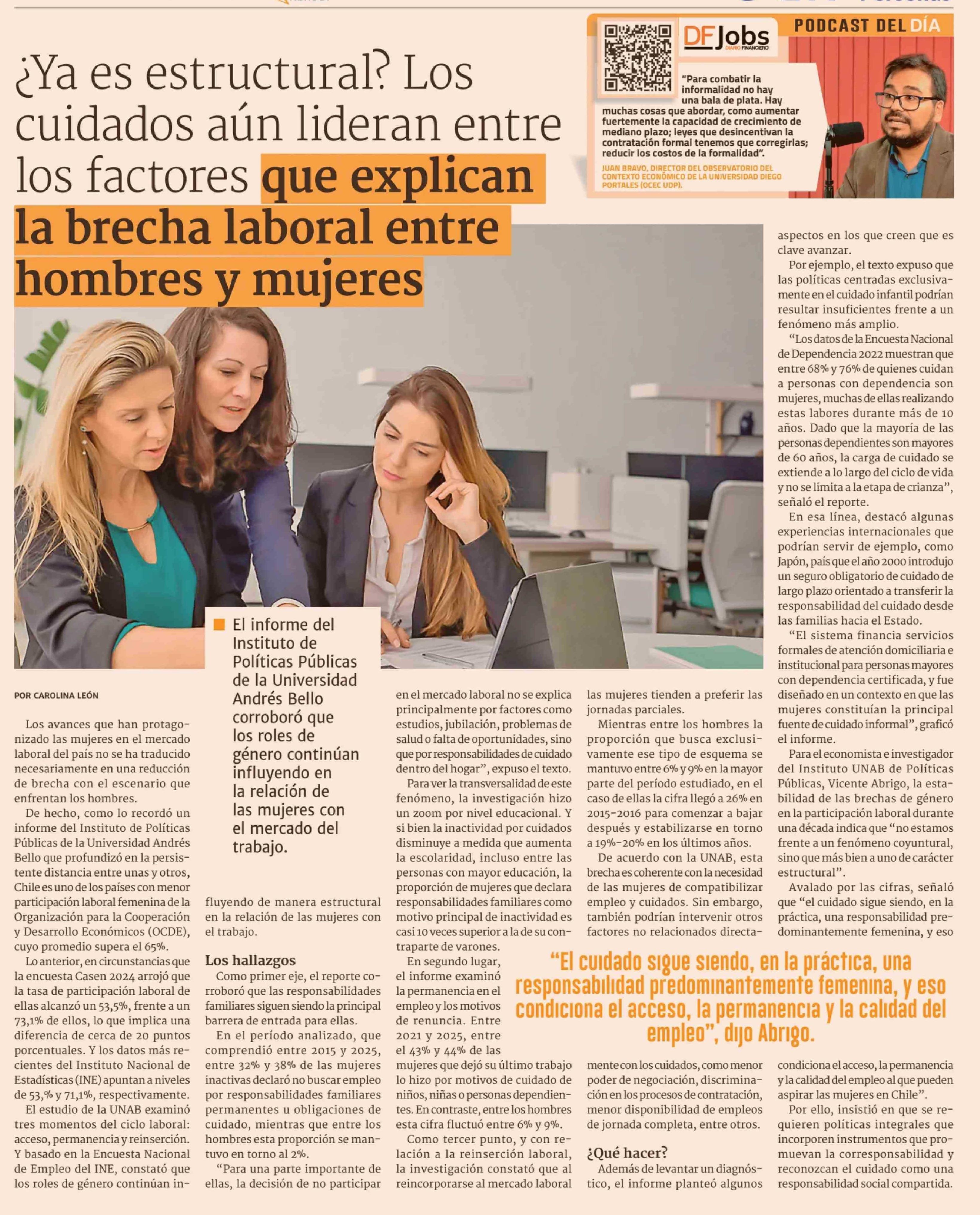 ¿Ya es estructural? Los cuidados aún lideran entre los factores que explican la brecha laboral entre hombres y mujeres