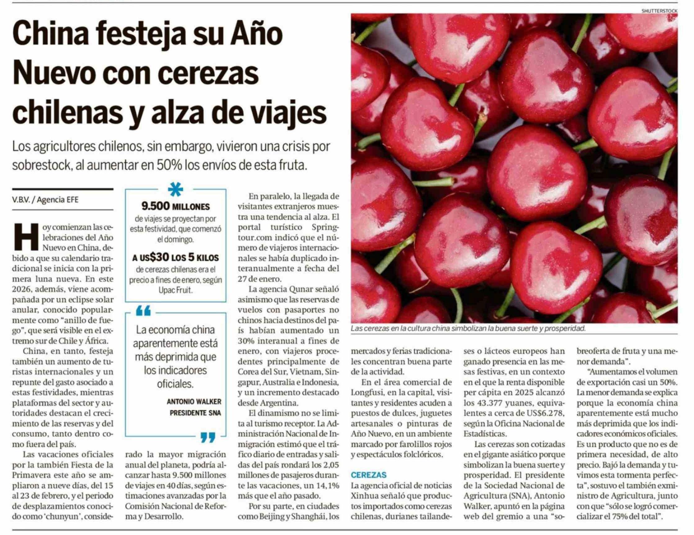 China festeja su Año Nuevo con cerezas chilenas y alza de viajes