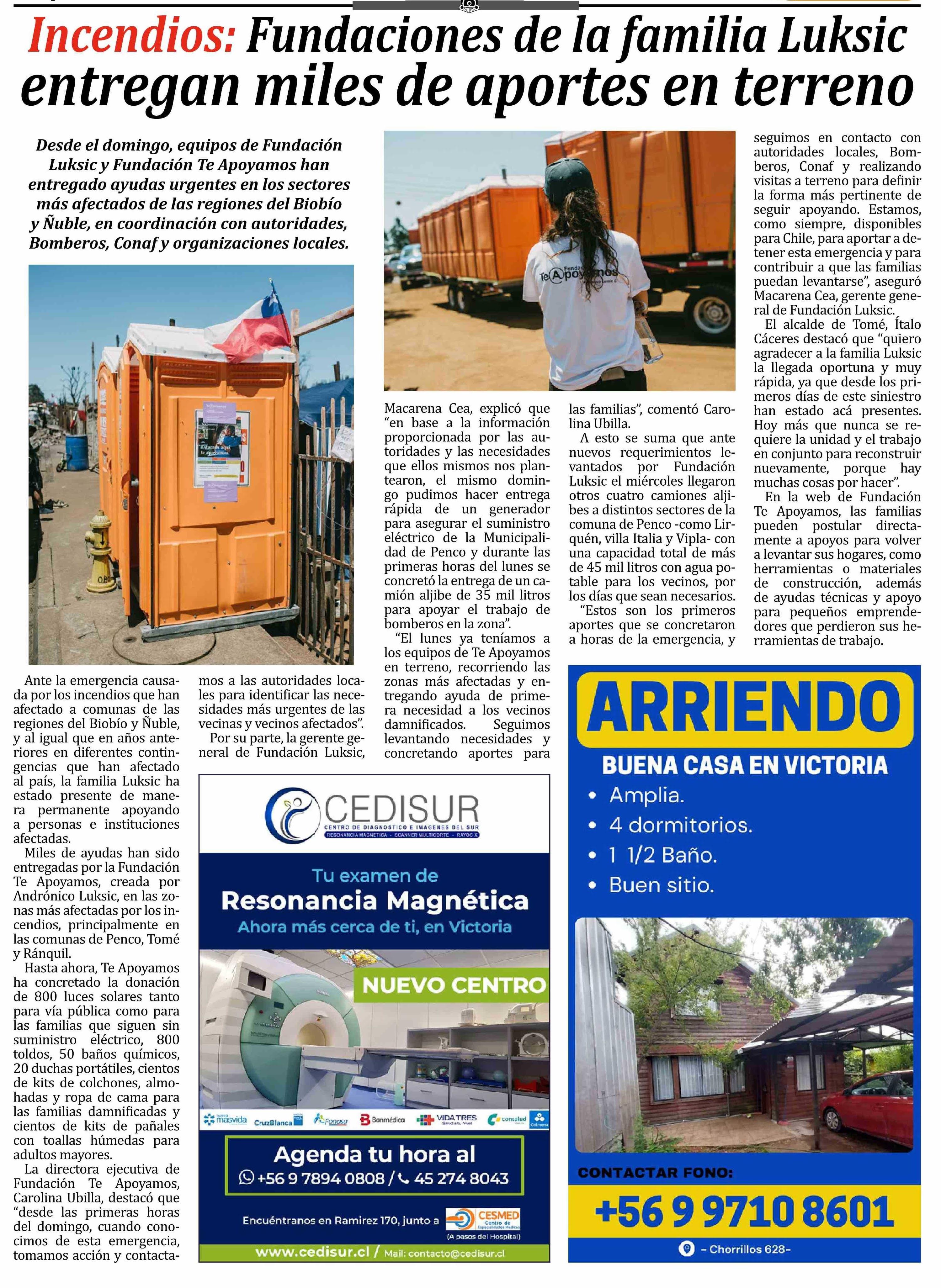 Incendios: Fundaciones de la familia Luksic entregan miles de aportes en terreno