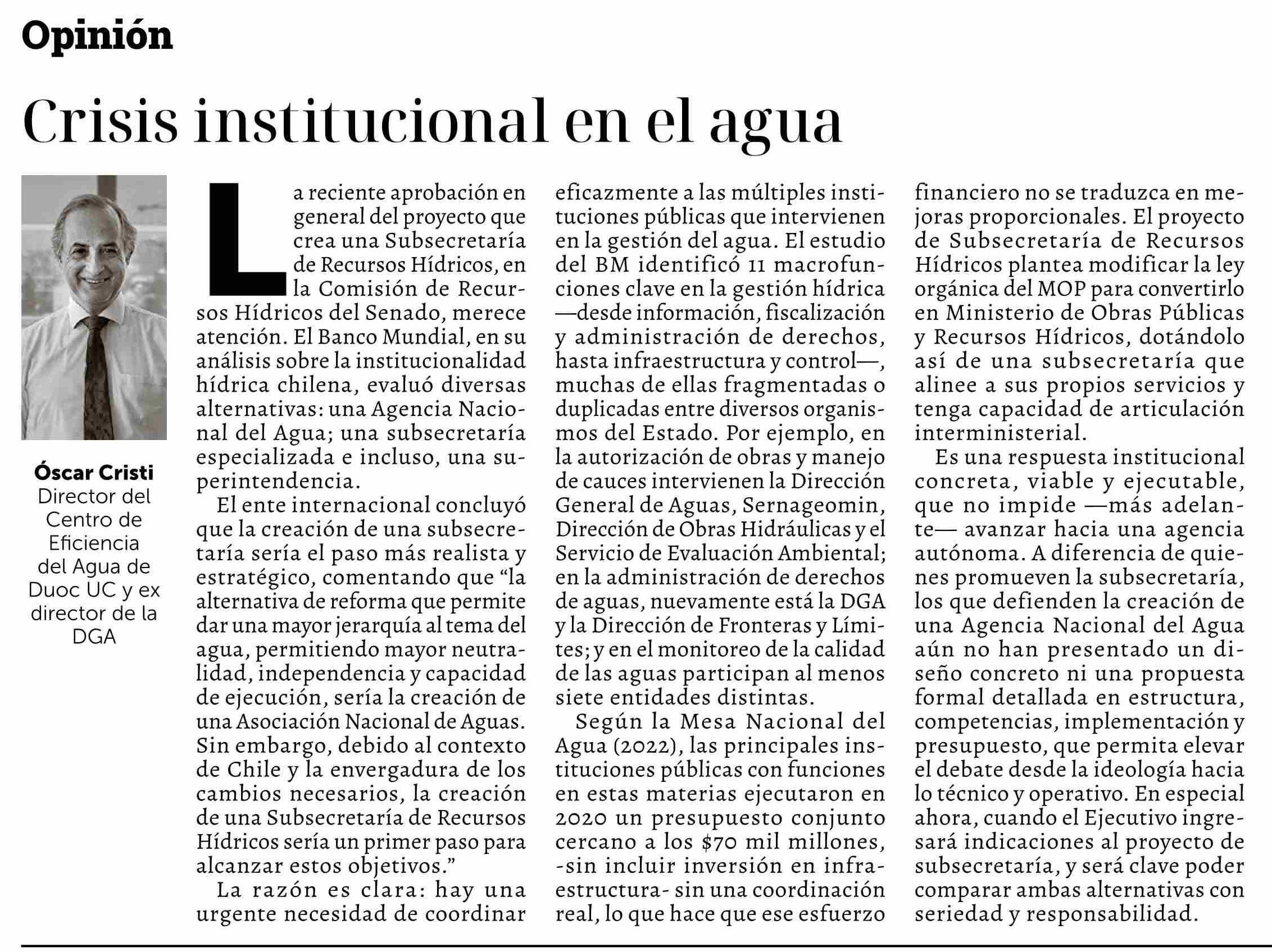 Crisis institucional en el agua