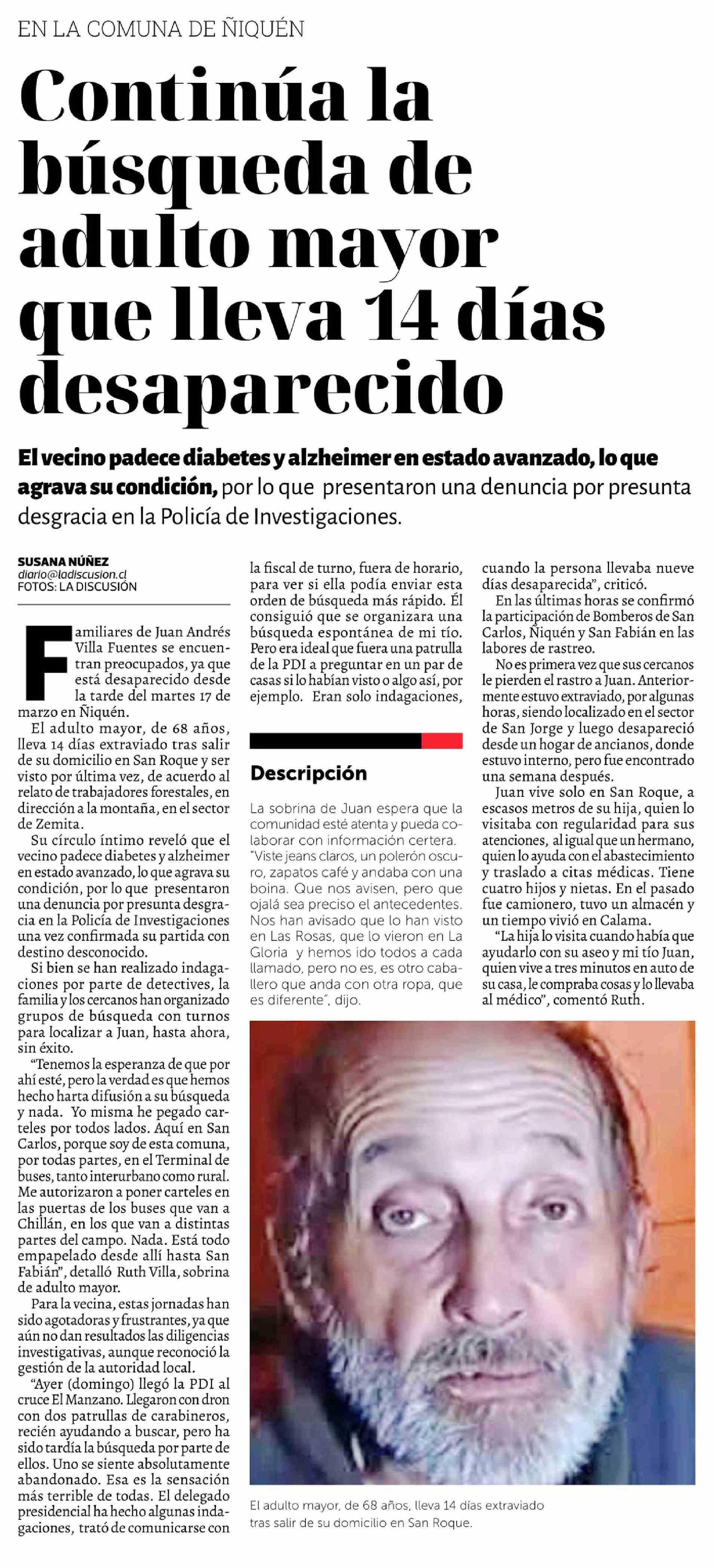 Continúa la búsqueda de adulto mayor que lleva 14 días desaparecido