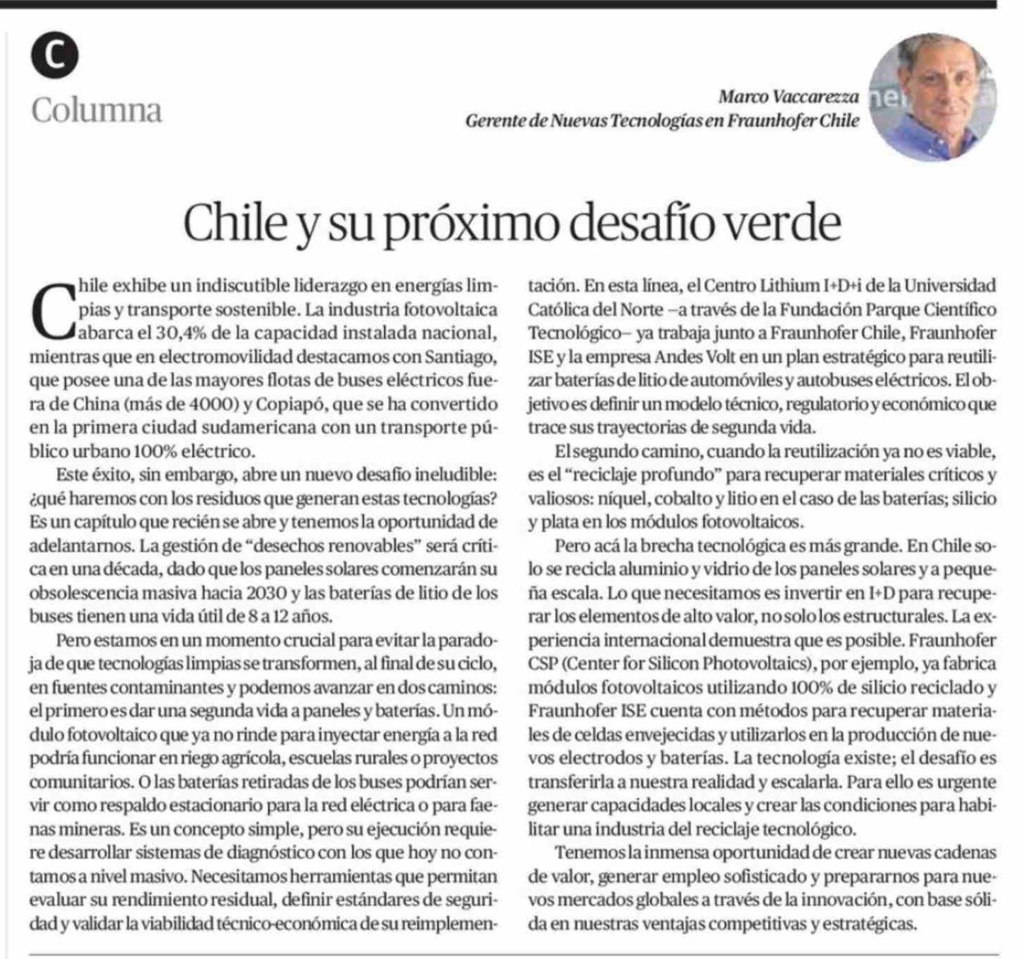 Columnas de Opinión: Chile y su próximo desafío verde