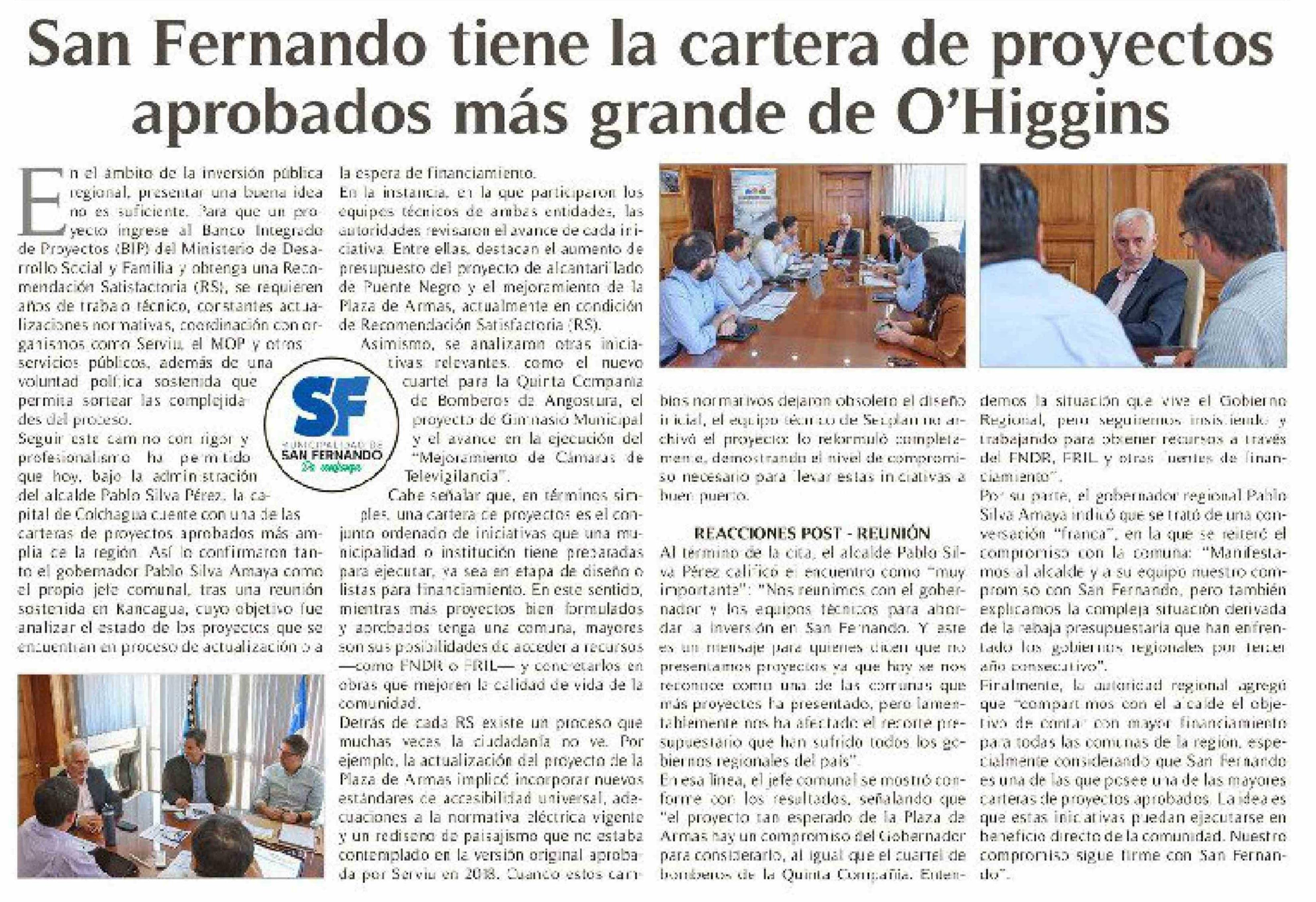San Fernando tiene la cartera de proyectos aprobados más grande de O'Higgins