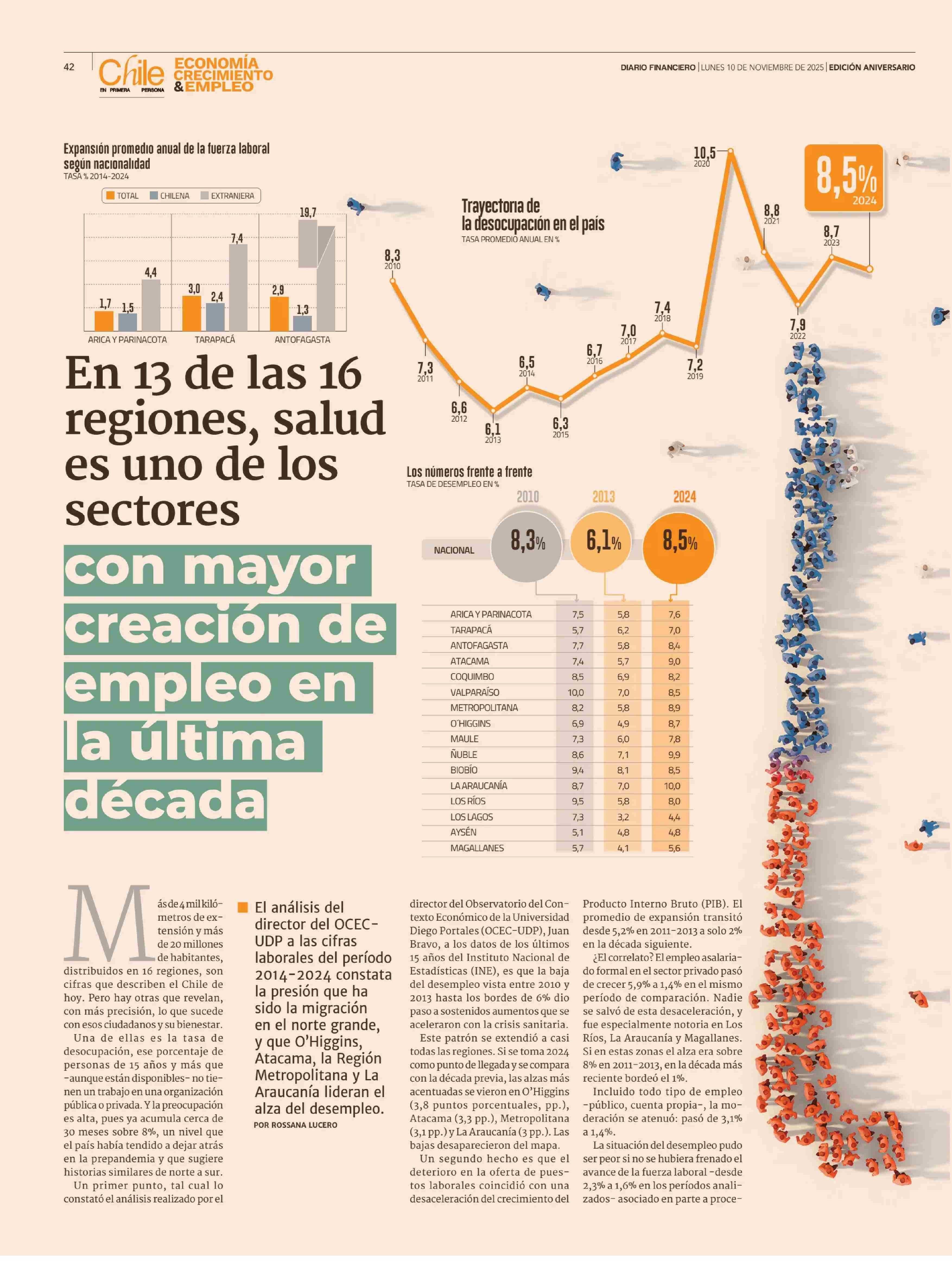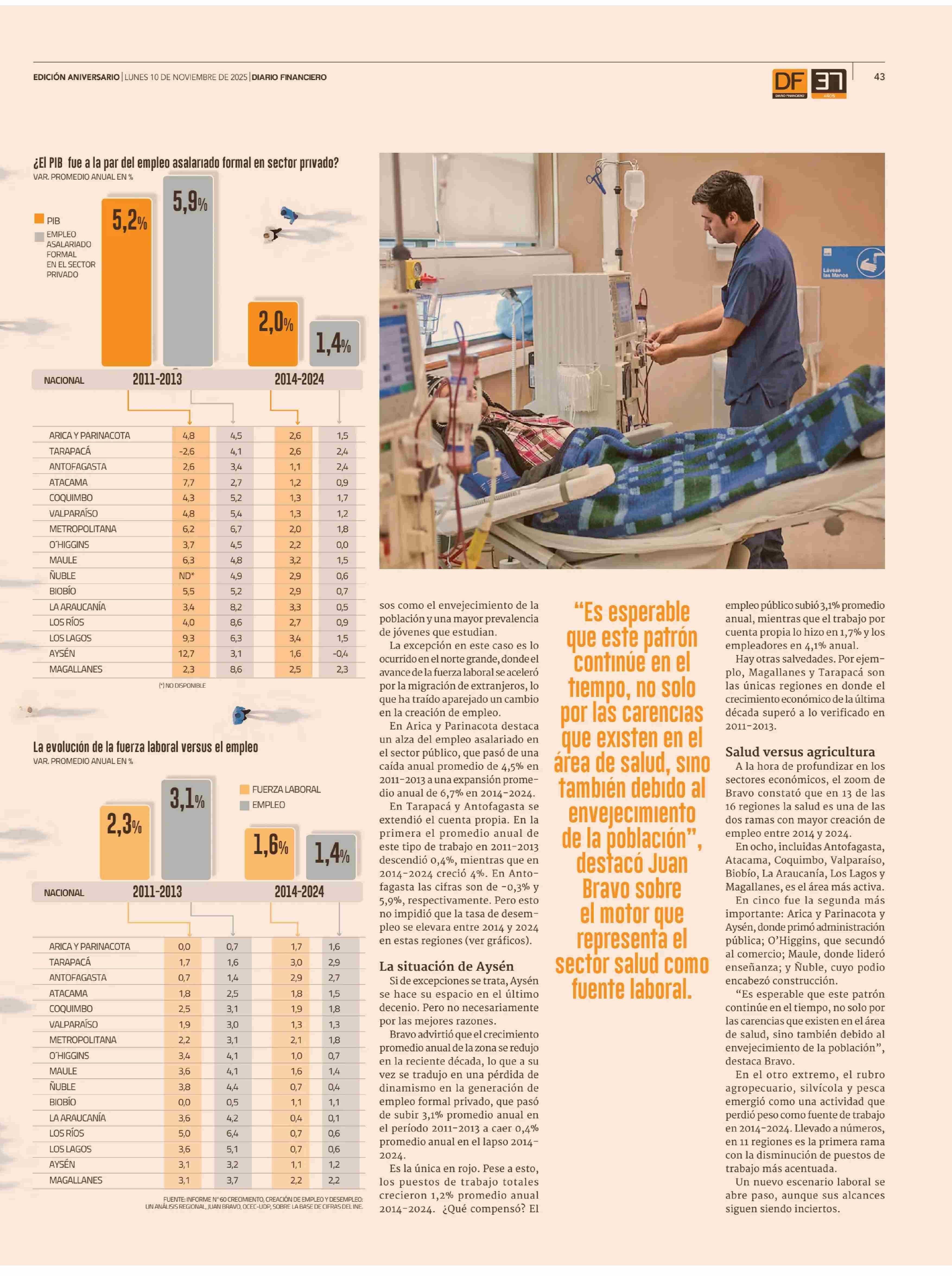 En 13 de las 16 regiones, salud es uno de los sectores con mayor creación de empleo en la última década