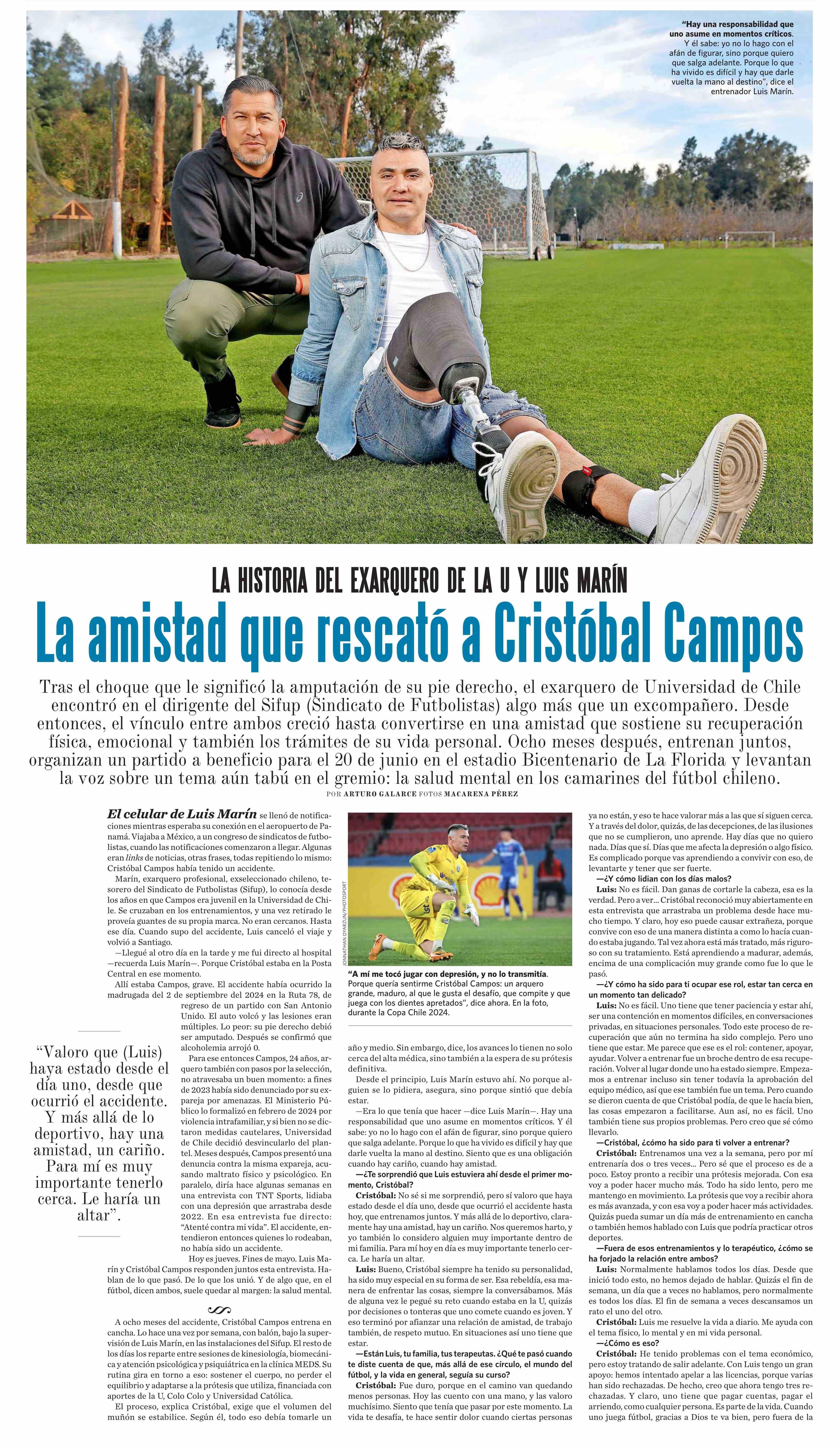 LA HISTORIA DEL EXARQUERO DE LA U Y LUIS MARÍN La amistad que rescató a Cristóbal Campos