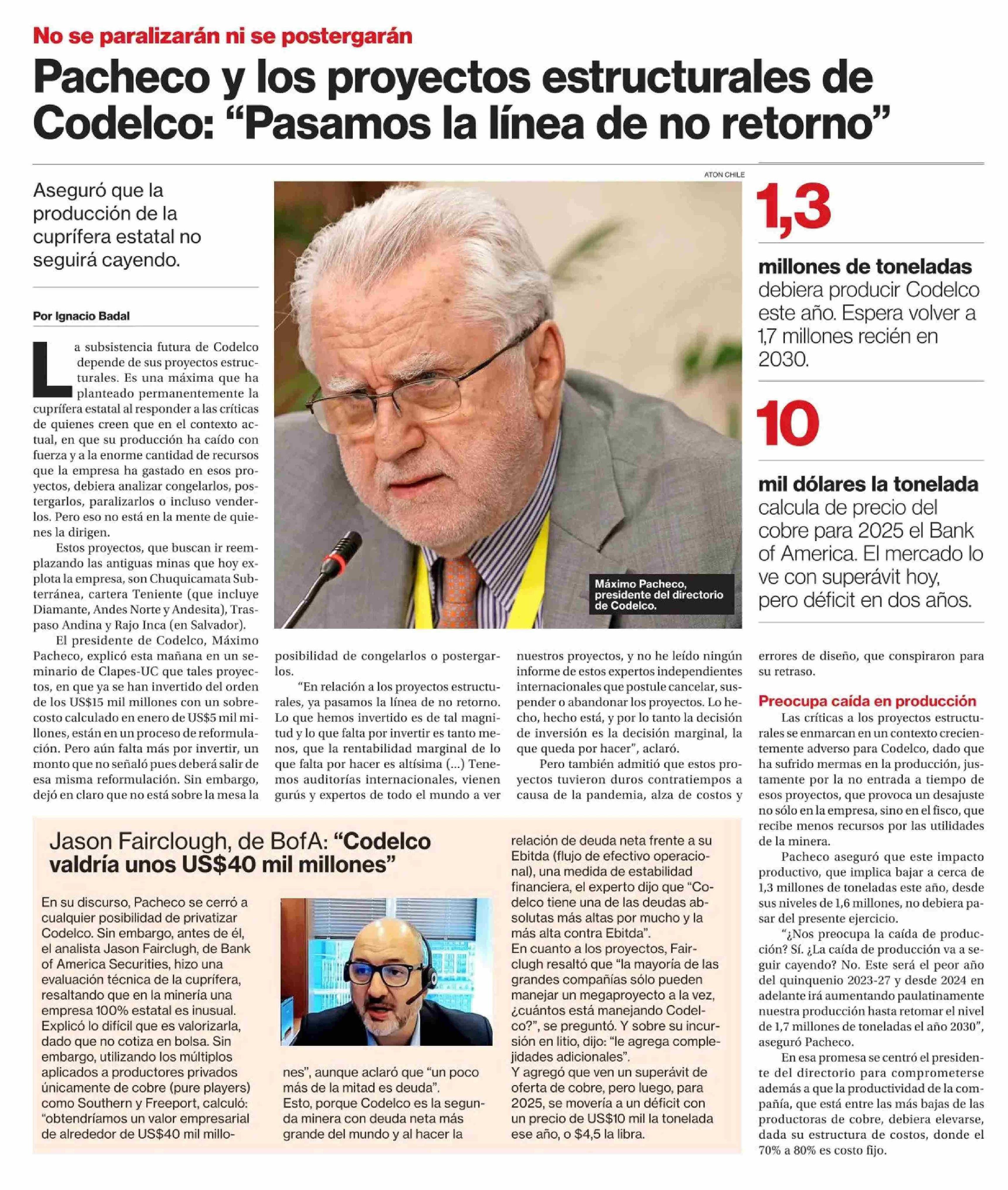 Pacheco y los proyectos estructurales de Codelco: “Pasamos la línea de no retorno”