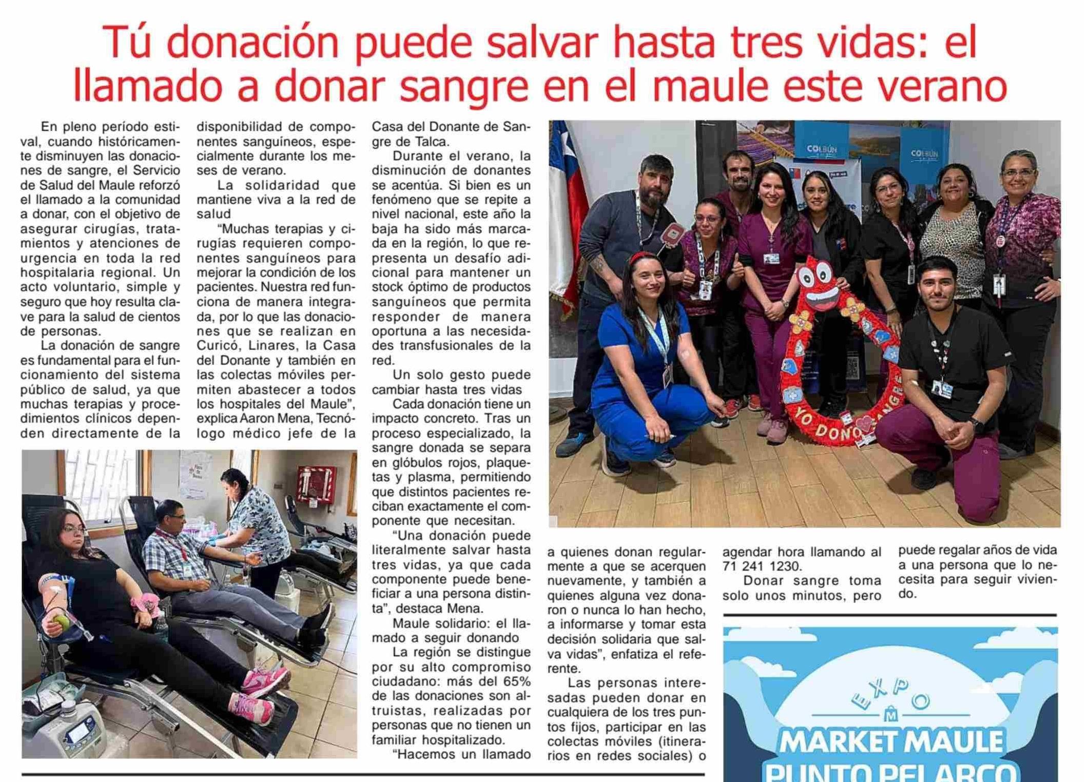 Tú donación puede salvar hasta tres vidas: el llamado a donar sangre en el maule este verano