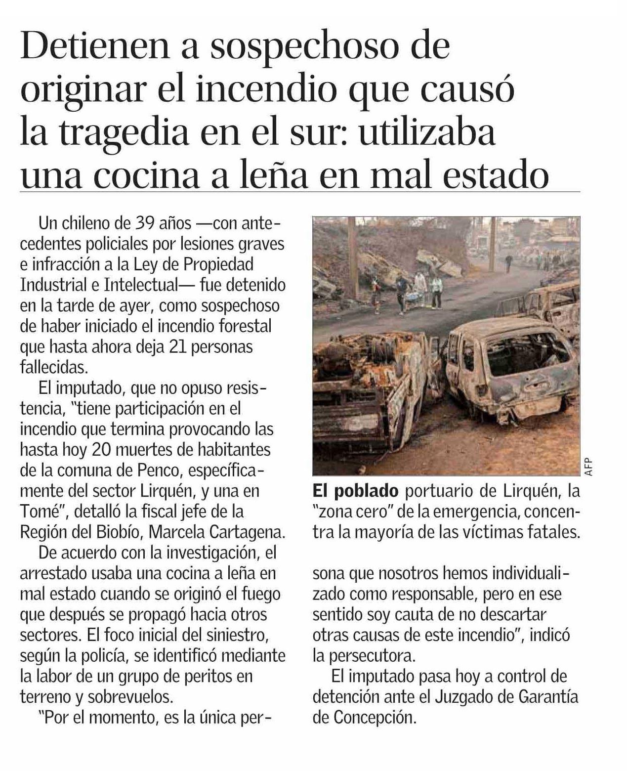 Detienen a sospechoso de originar el incendio que causó la tragedia en el sur: utilizaba una cocina a leña en mal estado
