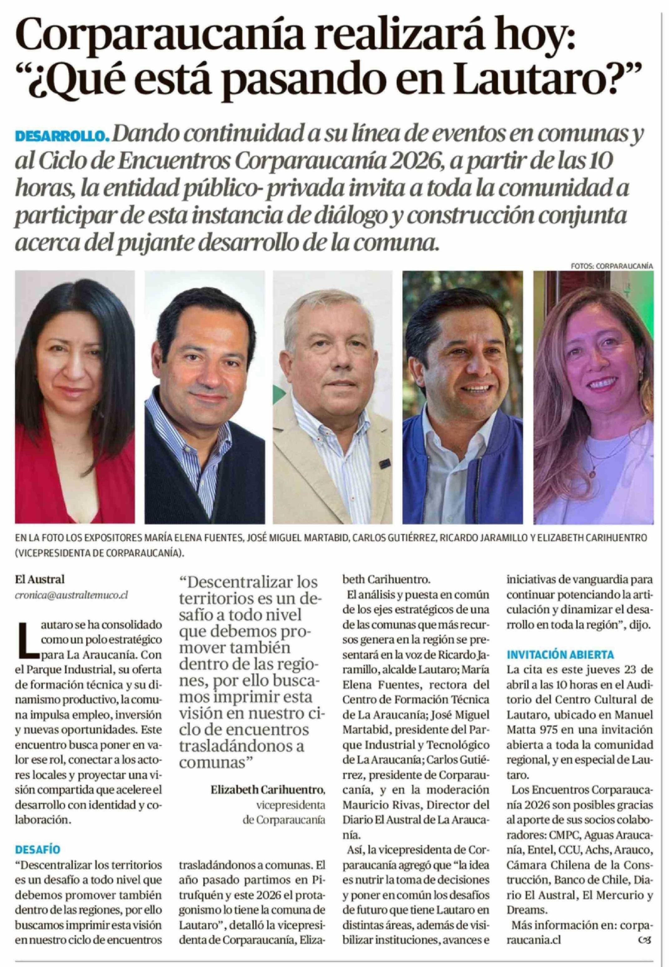 Título: Corparaucanía realizará hoy: "¿Qué está pasando en Lautaro?"