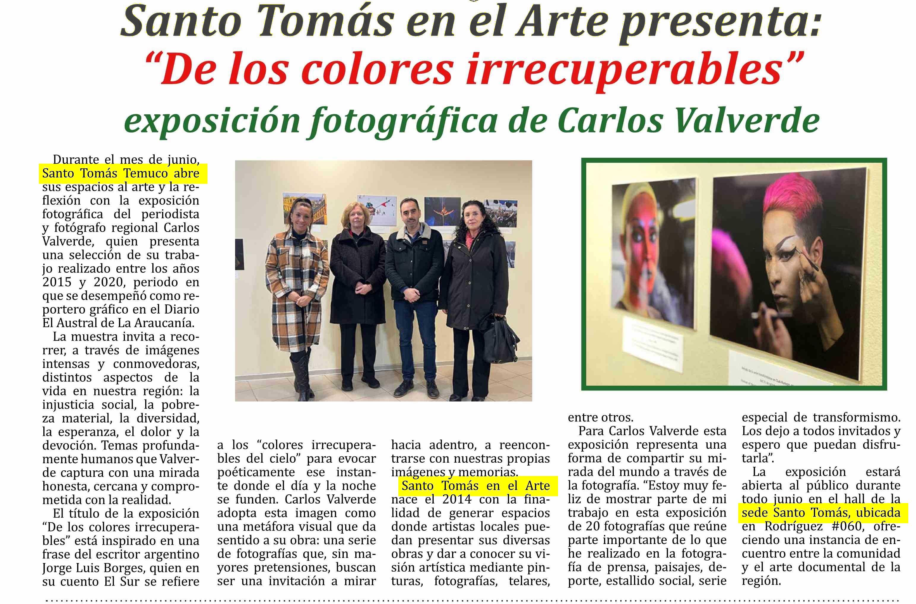 Santo Tomás en el Arte presenta: “De los colores irrecuperables” exposición fotográfica de Carlos Valverde
