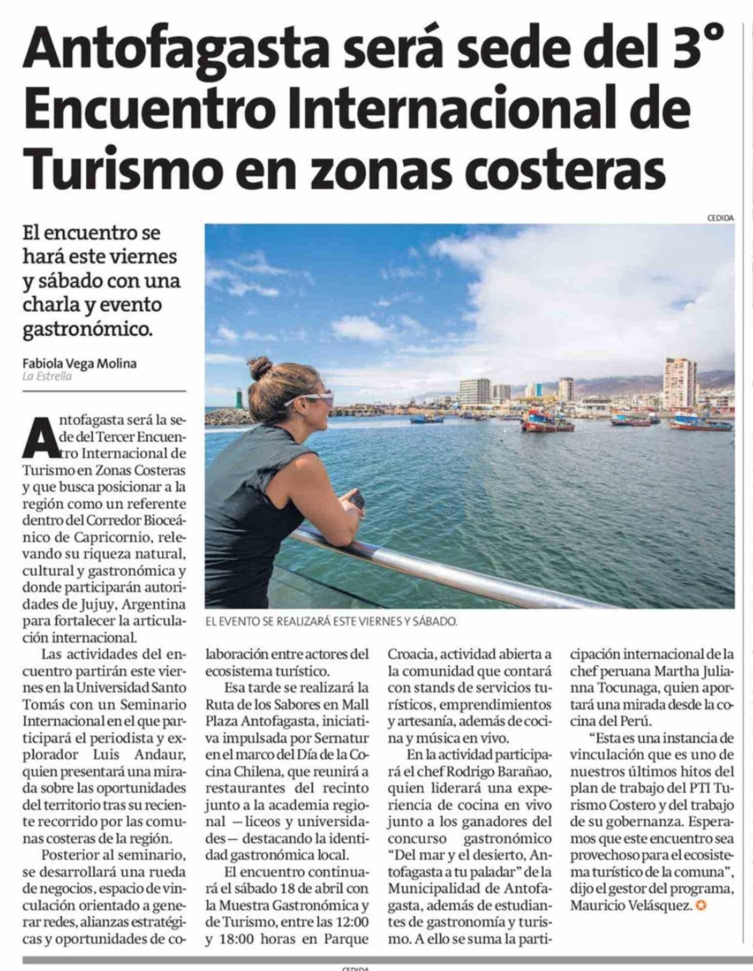 Título: Antofagasta será sede del 3º Encuentro Internacional de Turismo en zonas costeras