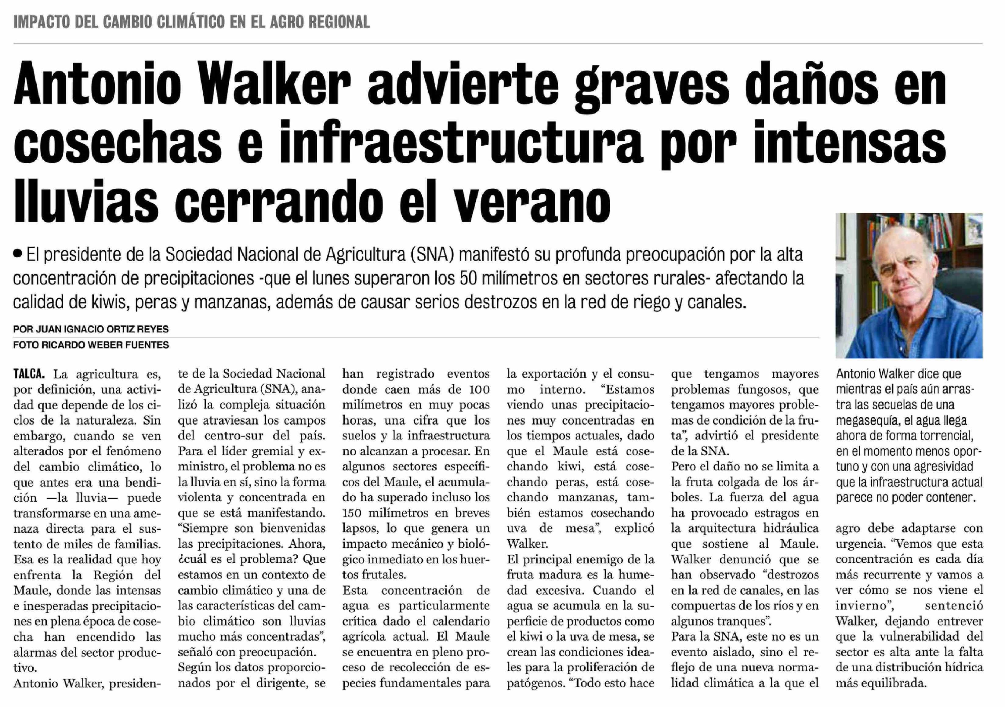Antonio Walker advierte graves daños en cosechas e infraestructura por intensas lluvias cerrando el verano
