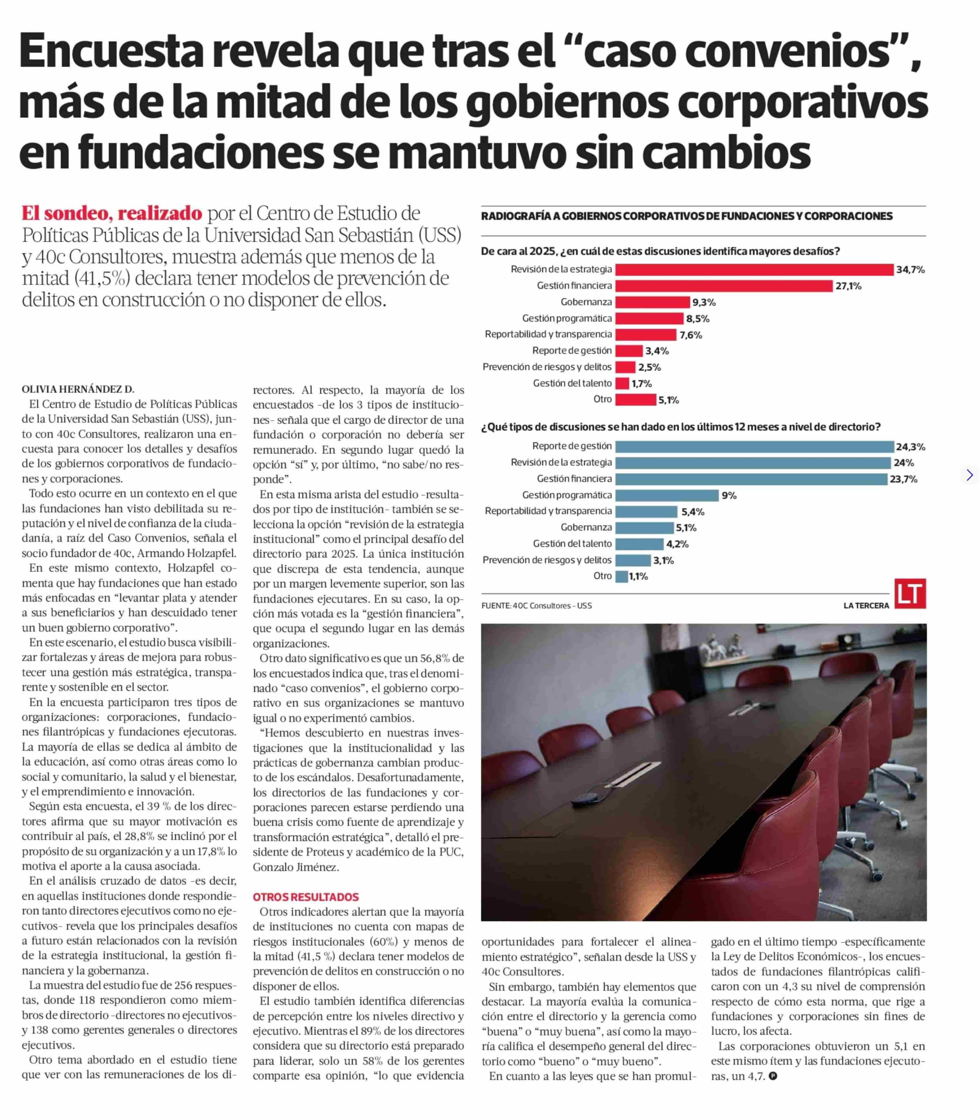 Encuesta revela que tras el “caso convenios”, más de la mitad de los gobiernos corporativos en fundaciones se mantuvo sin cambios