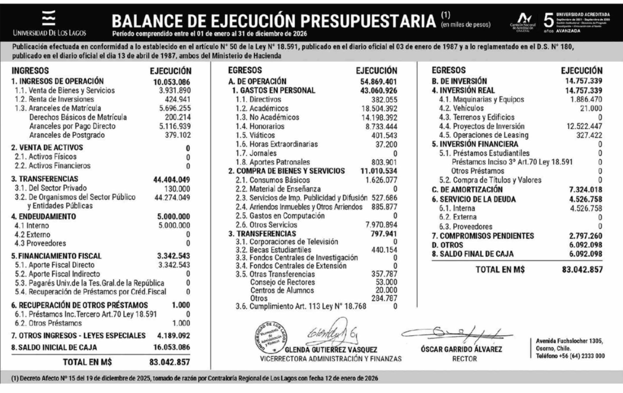 Título: Extractos: BALANCE DE EJECUCIÓN PRESUPUESTARIA