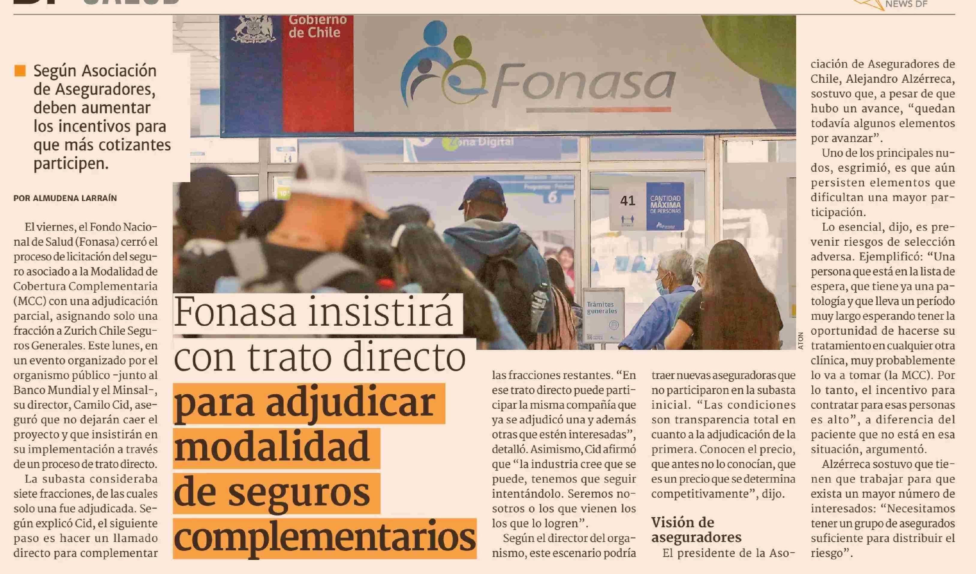 Fonasa insistirá con trato directo para adjudicar modalidad de seguros complementarios