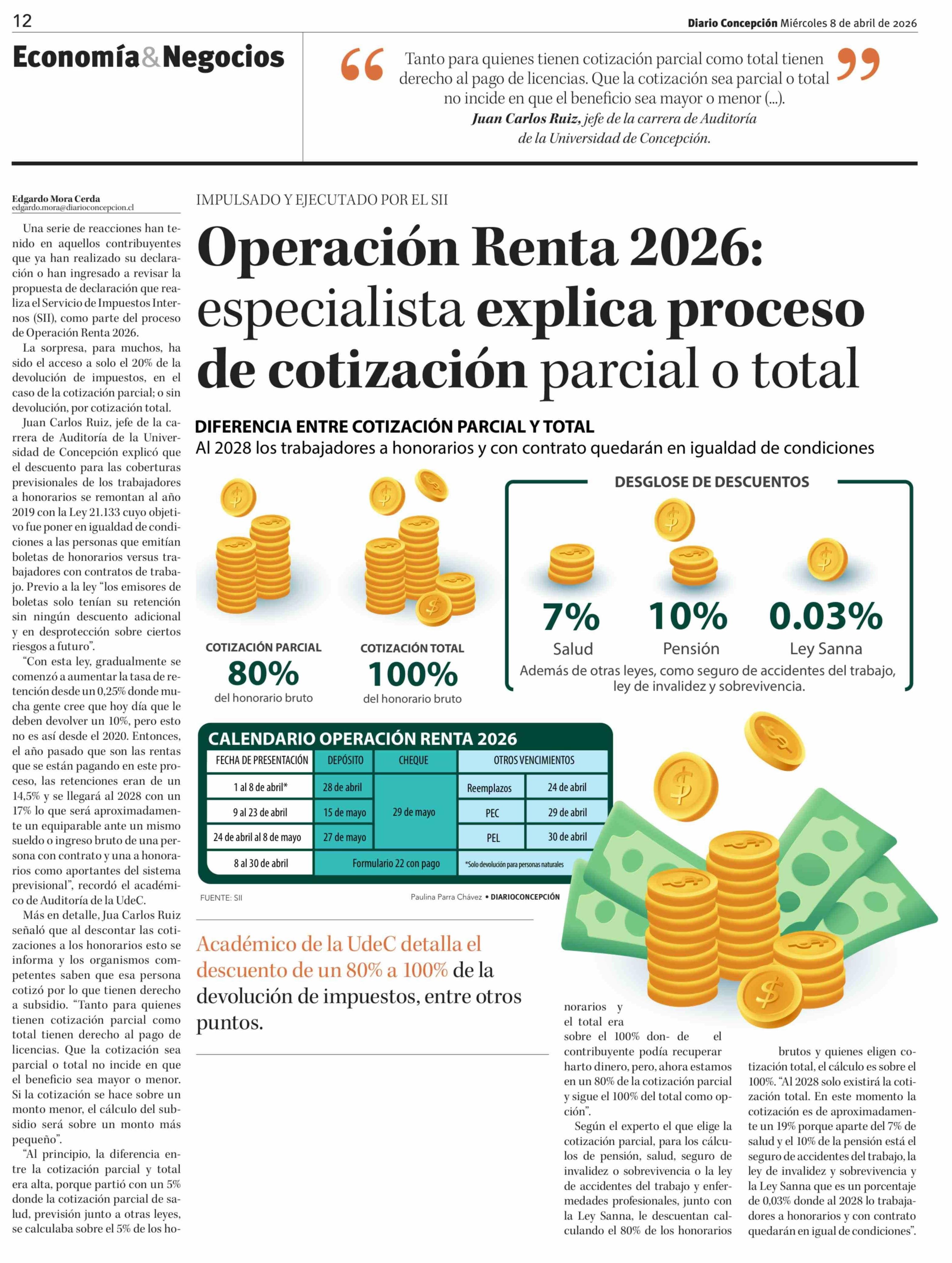 Operación Renta 2026: especialista explica proceso de cotización parcial o total
