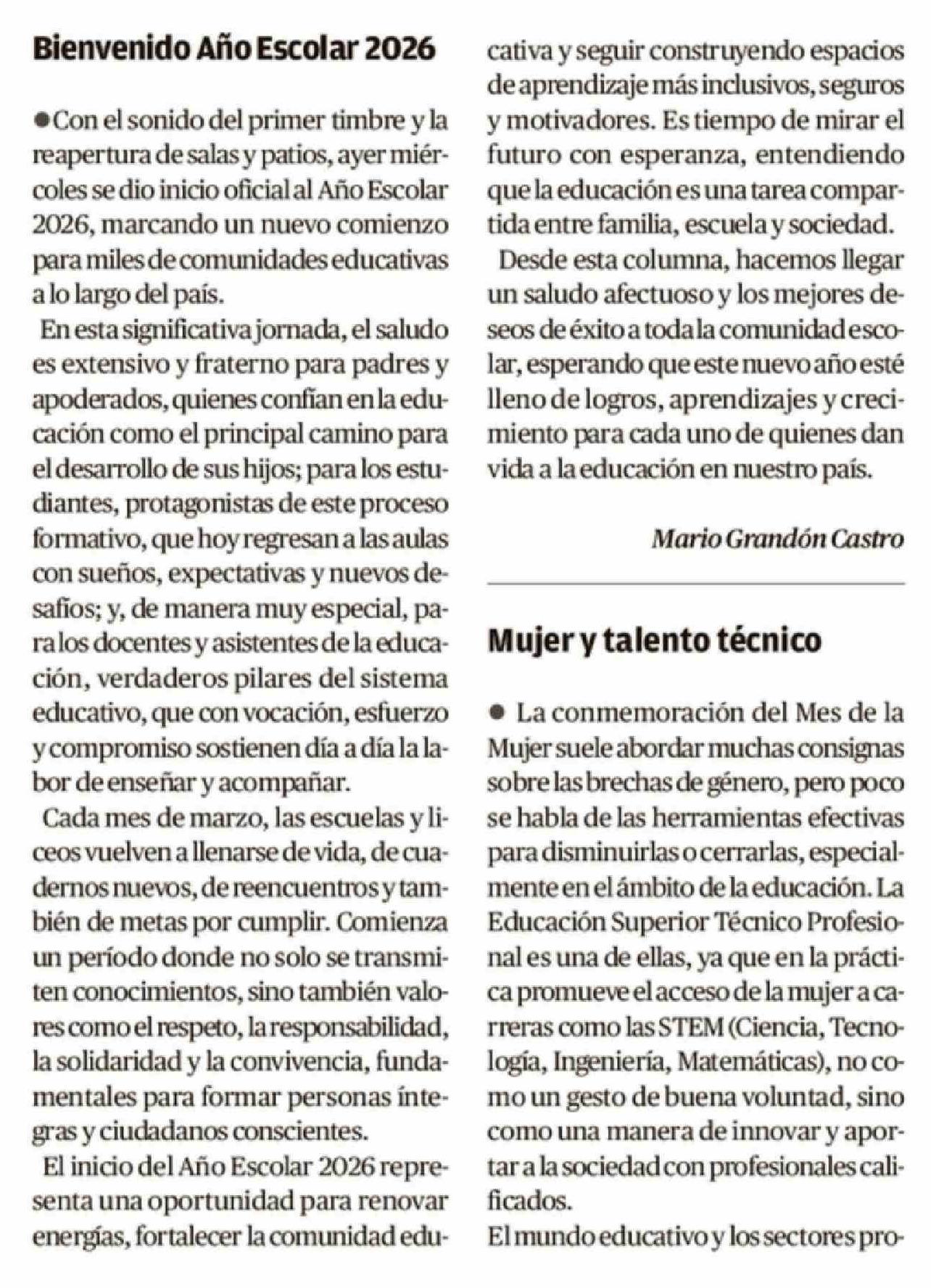 Cartas: Bienvenido Año Escolar 2026