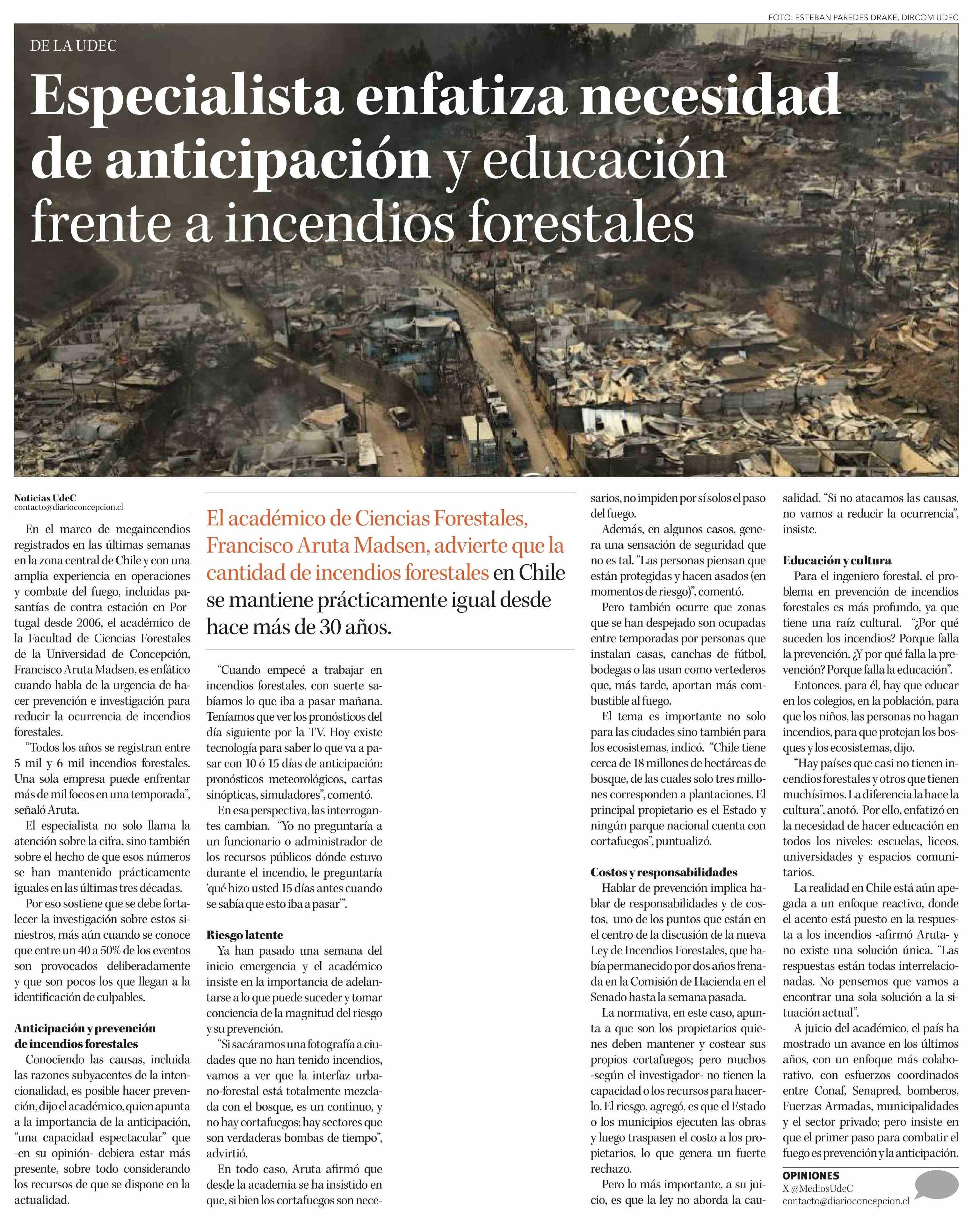 Especialista enfatiza necesidad de anticipación y educación frente a incendios forestales
