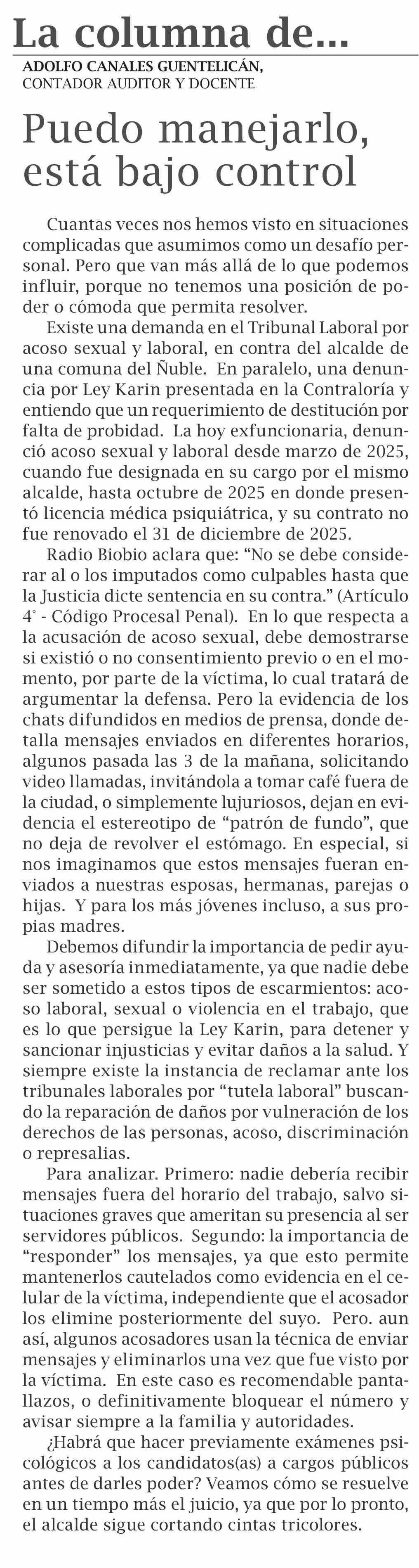COLUMNAS DE OPINIÓN: Puedo manejarlo, está bajo control