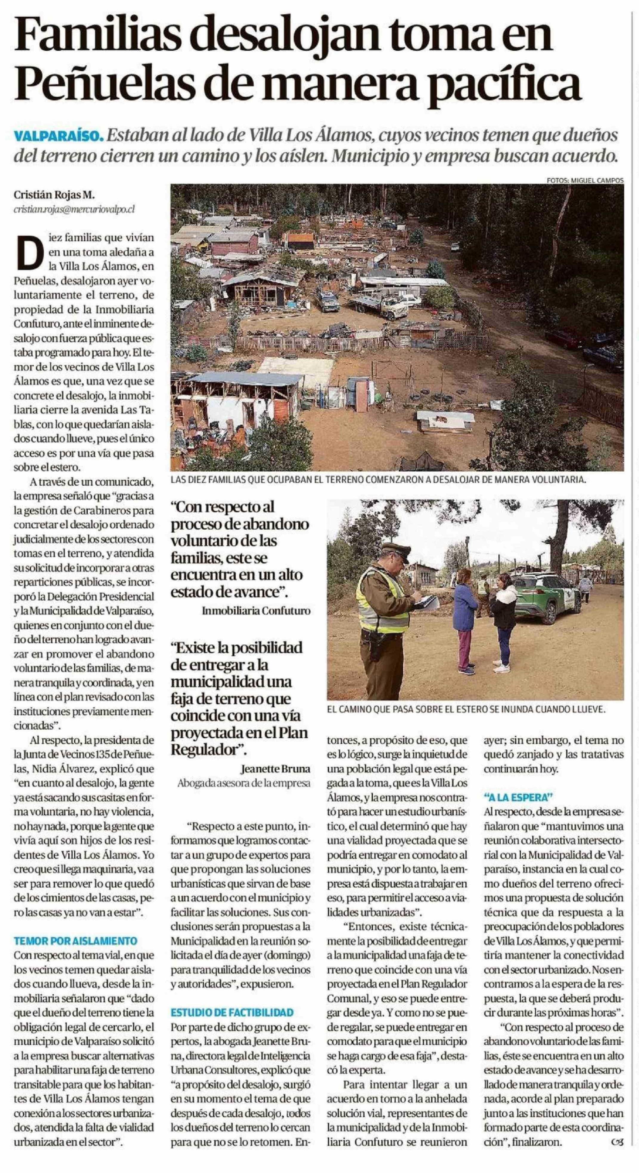 Familias desalojan toma en Peñuelas de manera pacífica