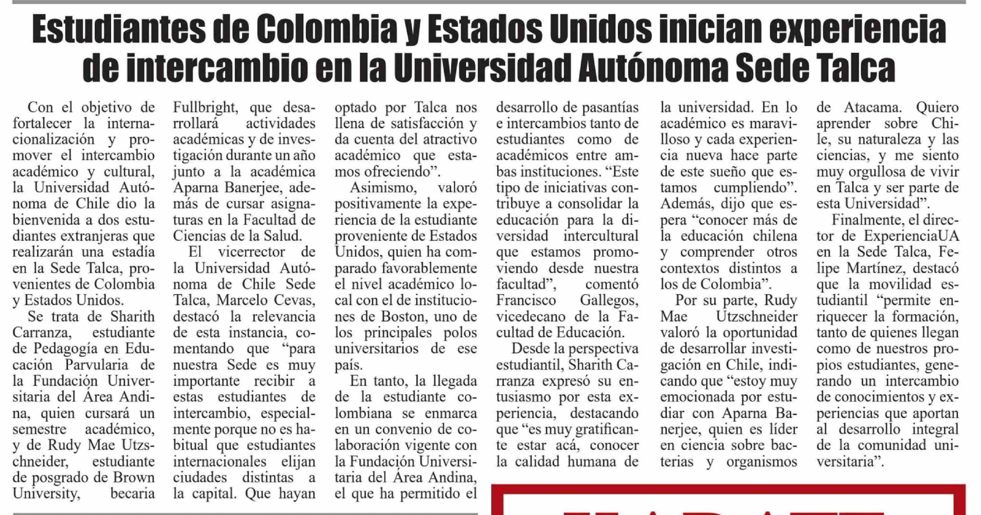 Estudiantes de Colombia y Estados Unidos inician experiencia de intercambio en la Universidad Autónoma Sede Talca