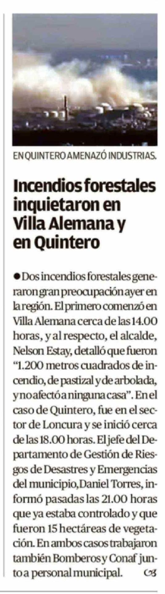 Incendios forestales inquietaron en Villa Alemana y en Quintero