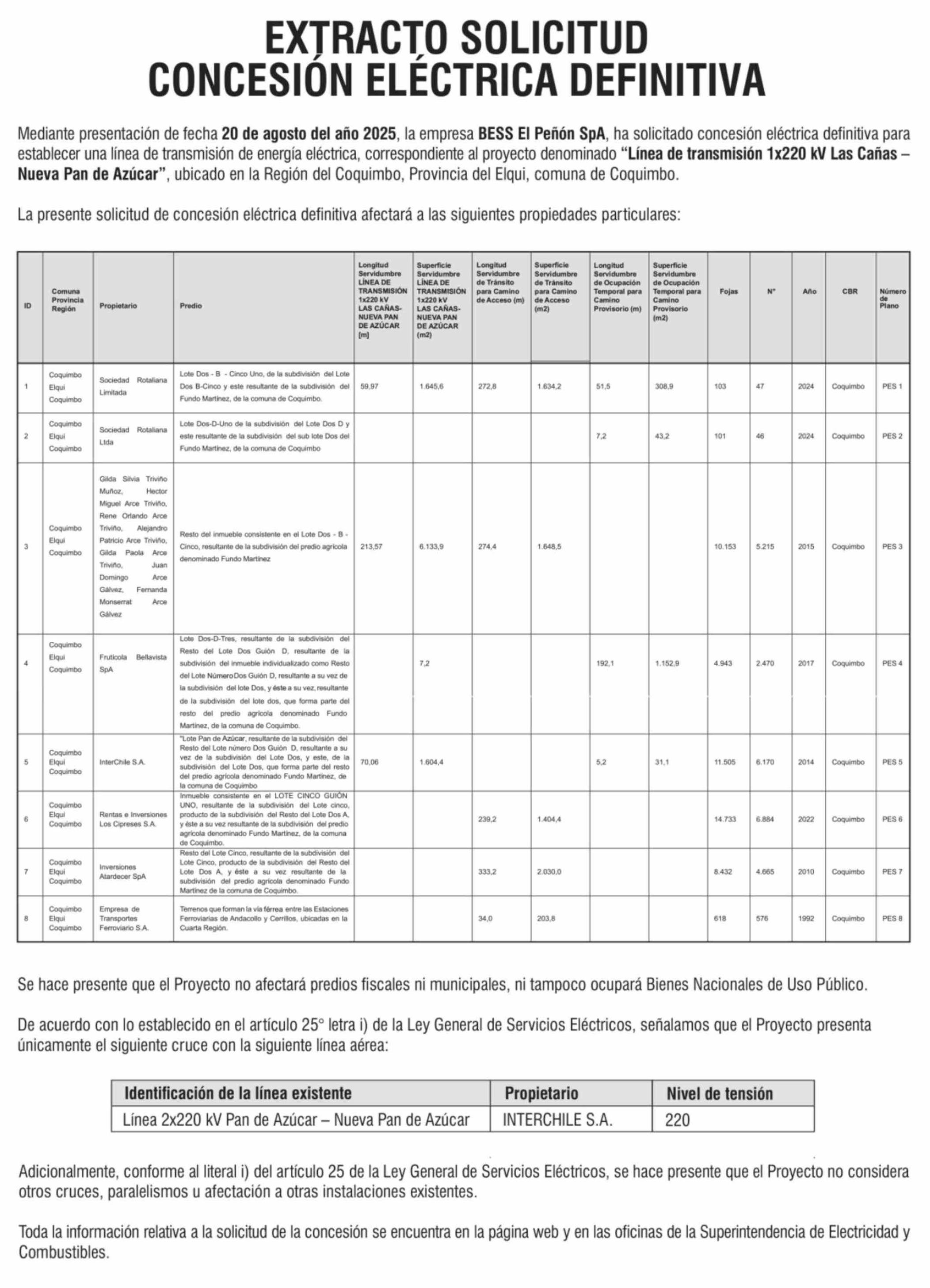 EXTRACTO SOLICITUD CONCESIÓN ELÉCTRICA DEFINITIVA