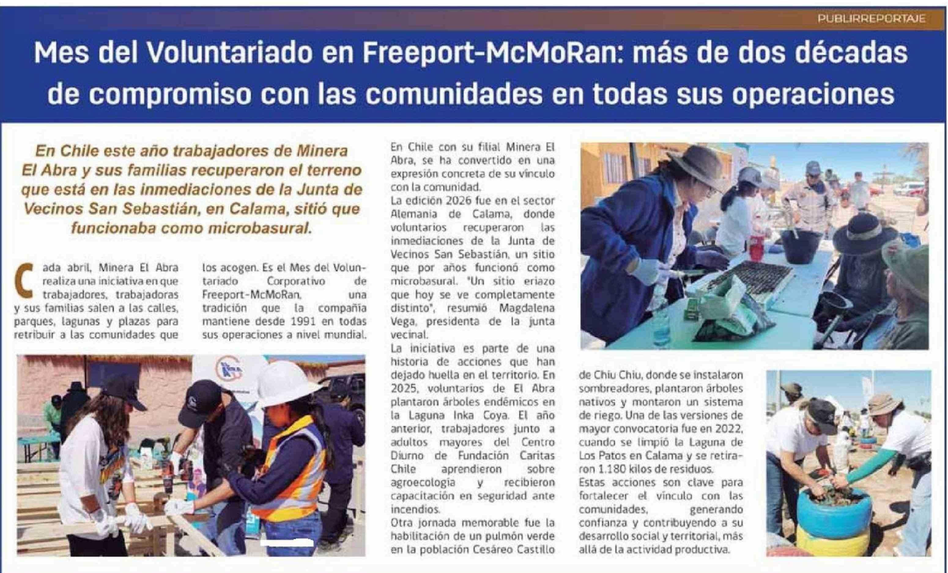 Mes del Voluntariado en Freeport-McMoRan: más de dos décadas de compromiso con las comunidades en todas sus operaciones