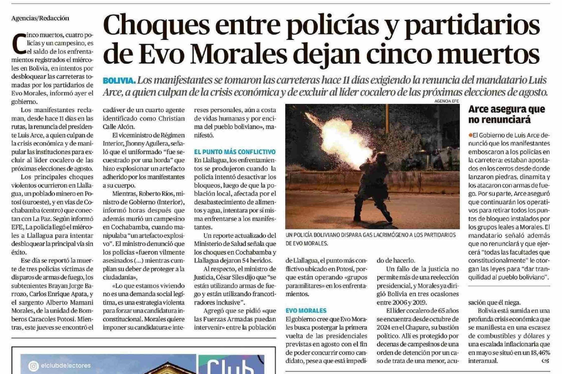 Choques entre policías y partidarios de Evo Morales dejan cinco muertos