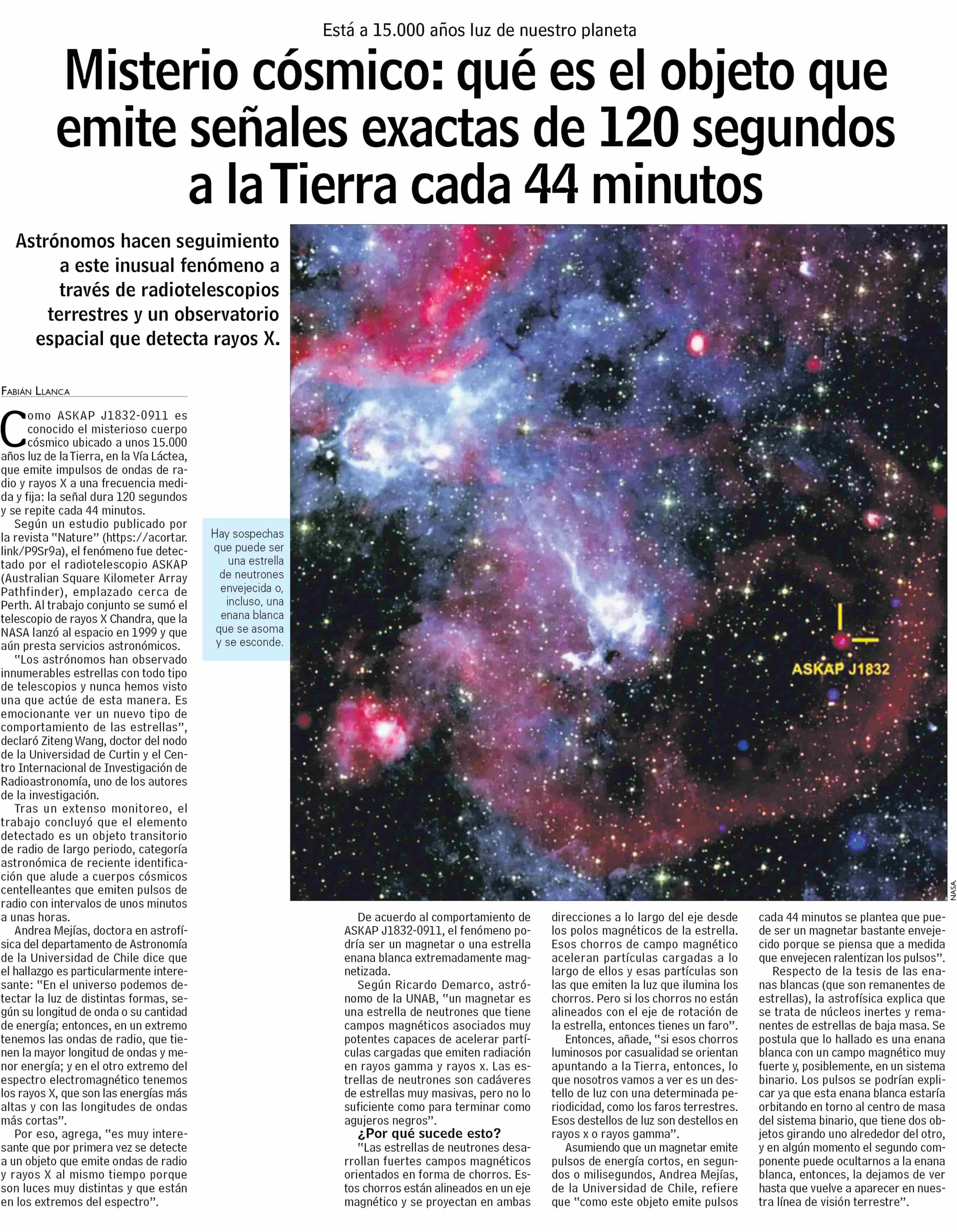Misterio cósmico: qué es el objeto que emite señales exactas de 120 segundos a la Tierra cada 44 minutos