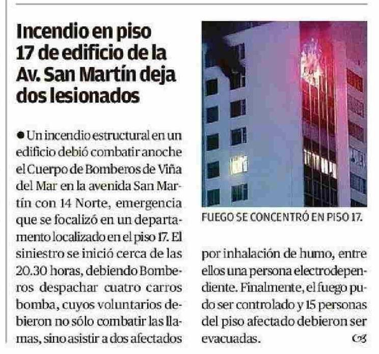 Incendio en piso 17 de edificio dela Av. San Martín deja dos lesionados