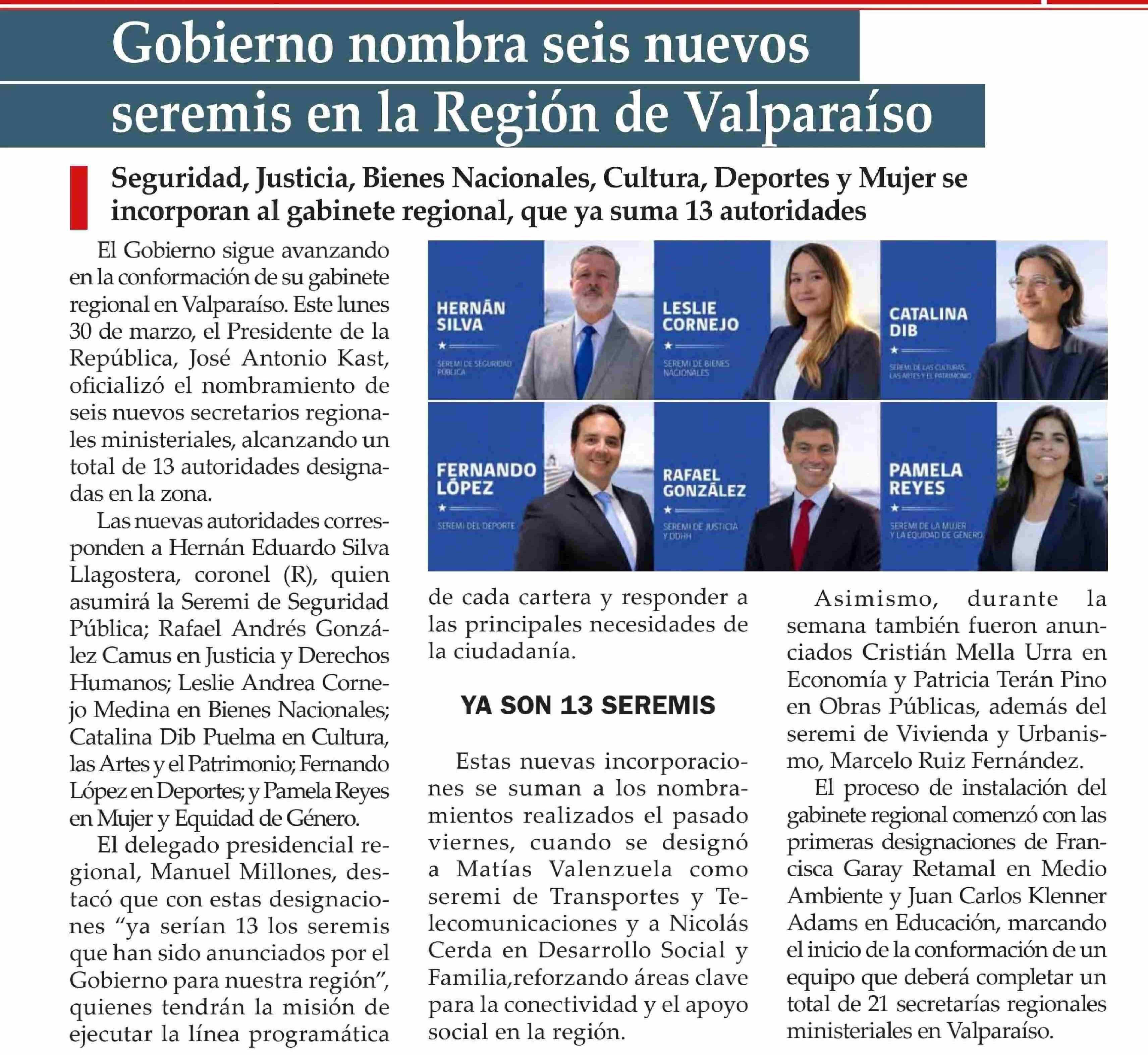 Gobierno nombra seis nuevos seremis en la Región de Valparaiso